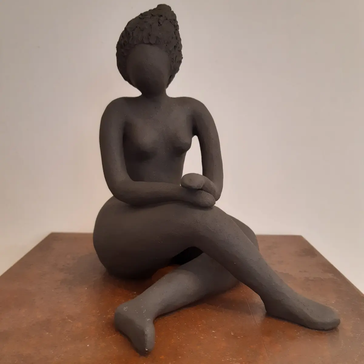 Toutes les sculptures sont des pièces uniques et réalisées dans du grès noir ou blanc, plus ou moins chamotté et parfois émaillées avec légèreté.