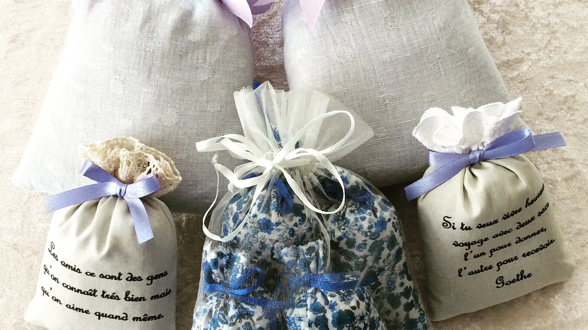 Marie vous propose aussi la personnalisation des sachets de lavande pour mariages, fêtes, baptêmes comme cadeaux d'invités pour hôtels, domaines ou vos événements.
