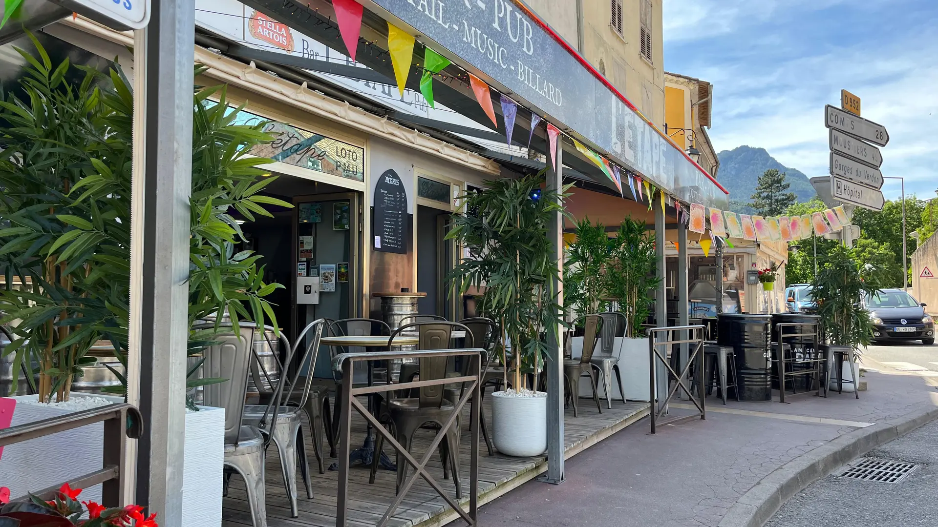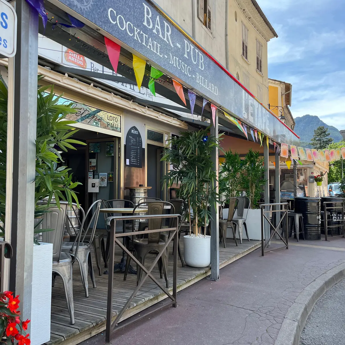 Le bar de l'étape se situe sur la place Marcel Sauvaire, la place principale de Castellane. Venez profiter d'un moment de convivialité sur sa terrasse ou dans sa salle de jeux (billard - babyfoot).