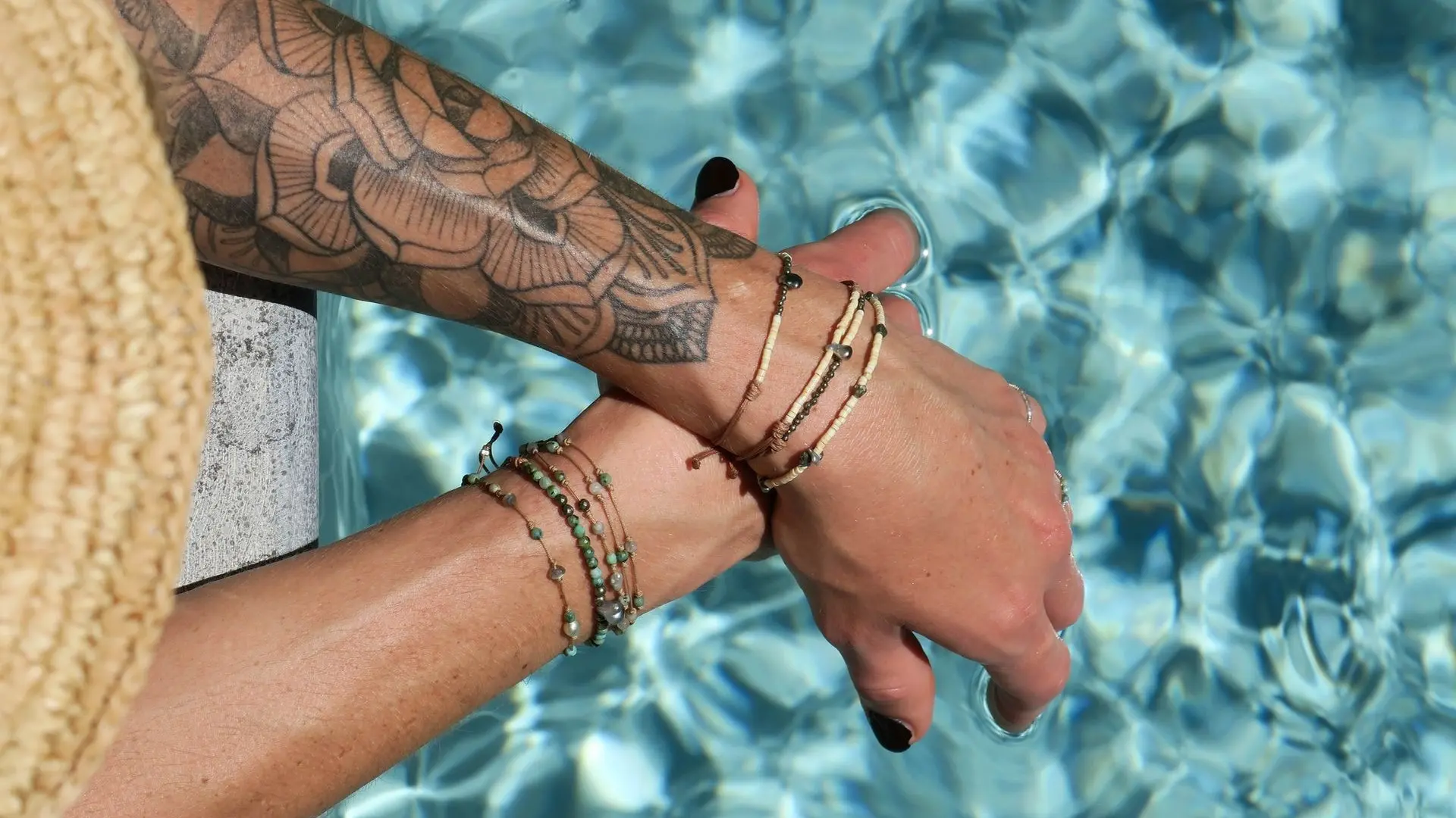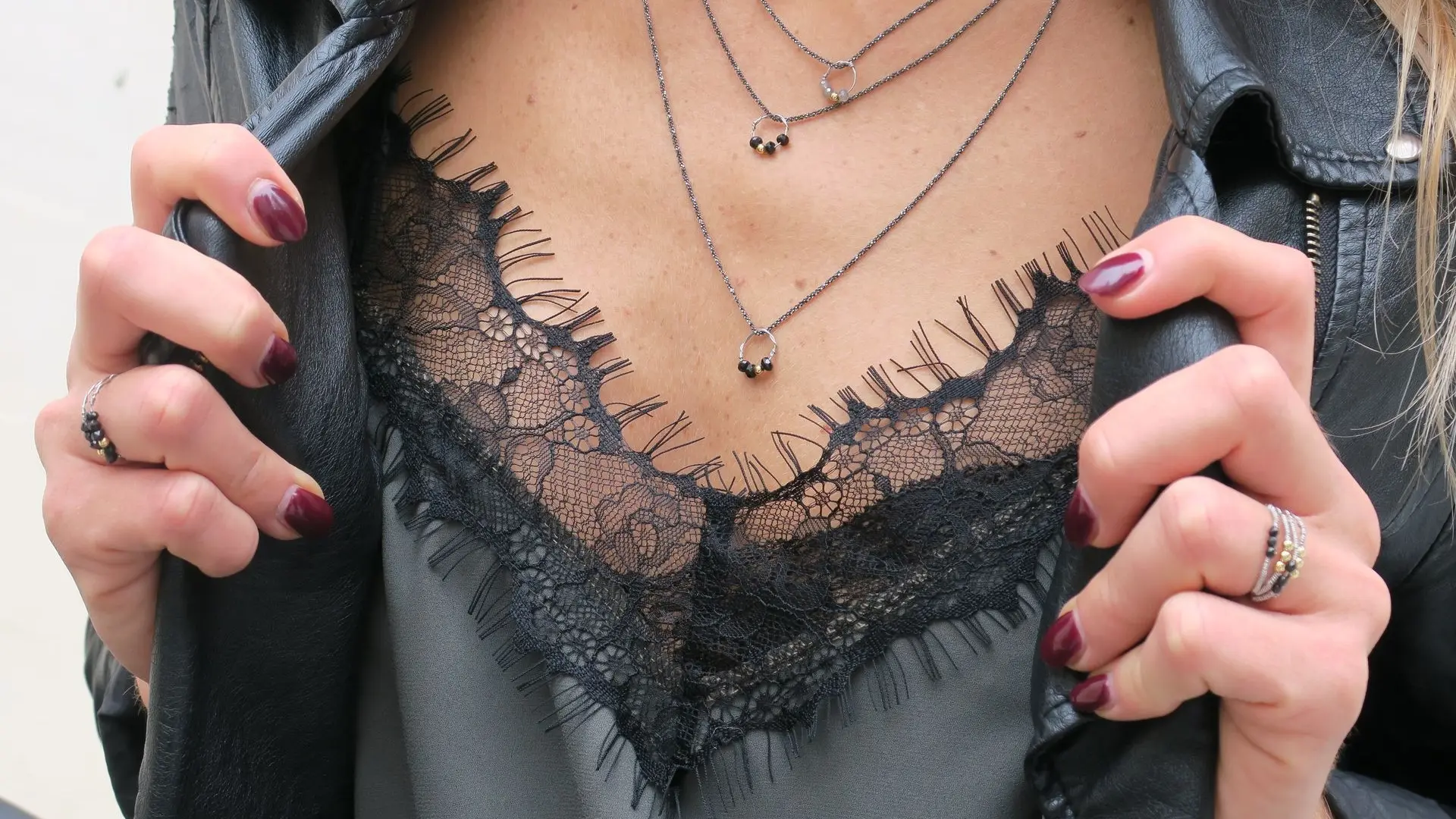Les colliers, bracelets, sautoirs sont imaginés pour se porter seuls ou entrelacés les uns aux autres.