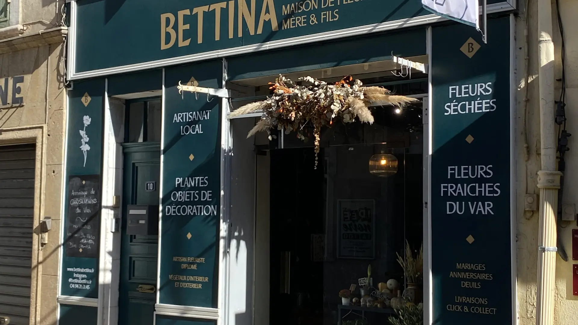 Fondé par Myriam (la mère) et Baptiste (le fils), Bettina – Maison de Fleurs & Décoration est un fleuriste situé à Saint-Cyr sur Mer, qui vous propose des bouquets de fleurs fraîches du Var, des plantes d’intérieur et d’extérieur, des objets de décoration tendances et vintages, aux influences méditerranéennes …