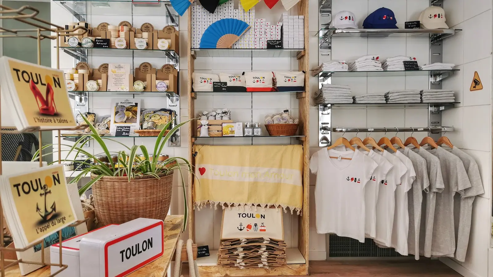 On y célèbre l’art de vivre toulonnais à travers une sélection exclusive d’objets locaux, d’idées cadeaux et de souvenirs : casquettes brodées, t-shirts, cartes postales, magnets et créations artisanales.