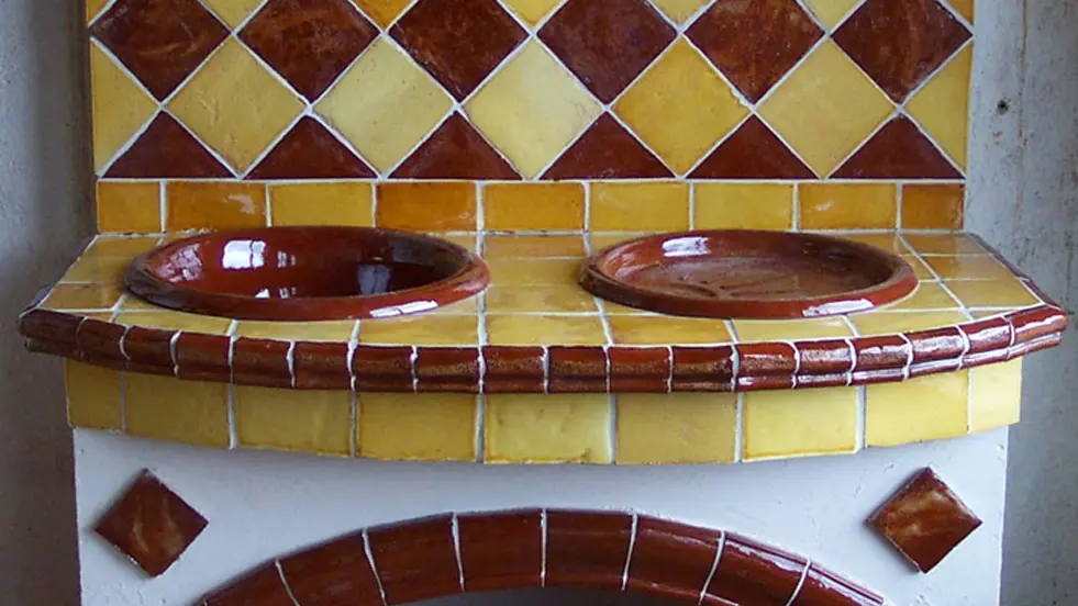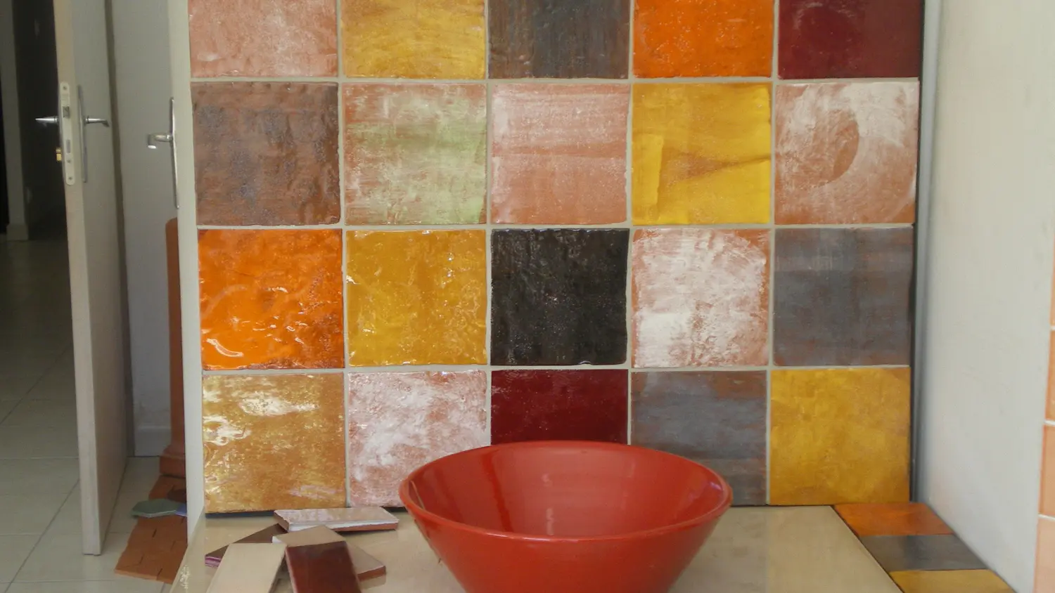 Fabrication de carrelages en terre cuite naturelle ou émaillés, fabrication de tians, vasques, plans vasque pour salle de bain ou plan de travail en lave émaillée.