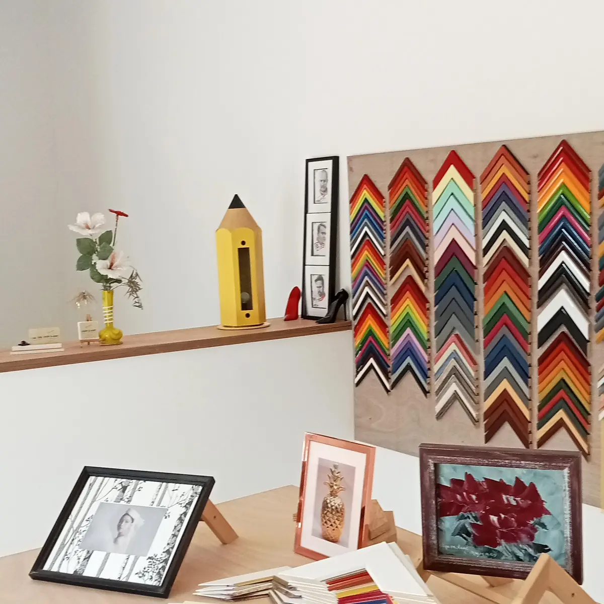 Nous avons un large choix de moulures et savons mettre en valeur vos œuvres, photos, objets grâce à nos passe-partout et biseaux.