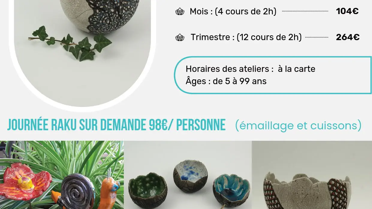 Venez la rencontrer et découvrir l'atelier et pourquoi pas vous essayer à la découverte de la terre et participer à des ateliers (sur rendez-vous).