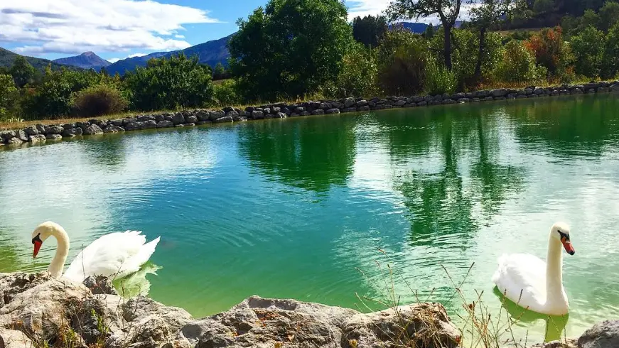 Profitez du calme et du charme de ce lieu, de son lac et de son couple de cygnes blancs. La vue à 360° sur les collines et montagnes environnantes. Dégustez les spécialités servies au restaurant puis ramenez des cadeaux, avec un large choix de conserves et bocaux préparés sur place avec des produits locaux.