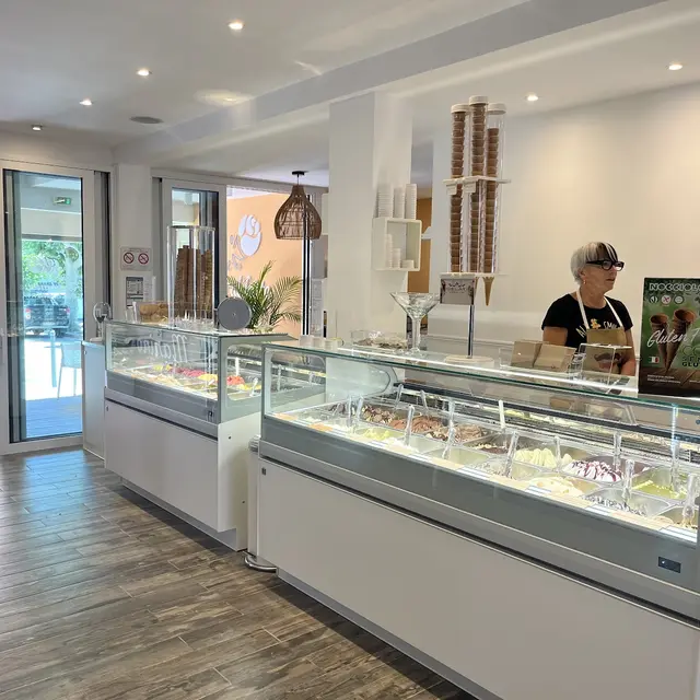 FIORDILATTE propose sur place ou à emporter des glaces, des gauffres, des brioches, des boissons, le café torréfié sur place.