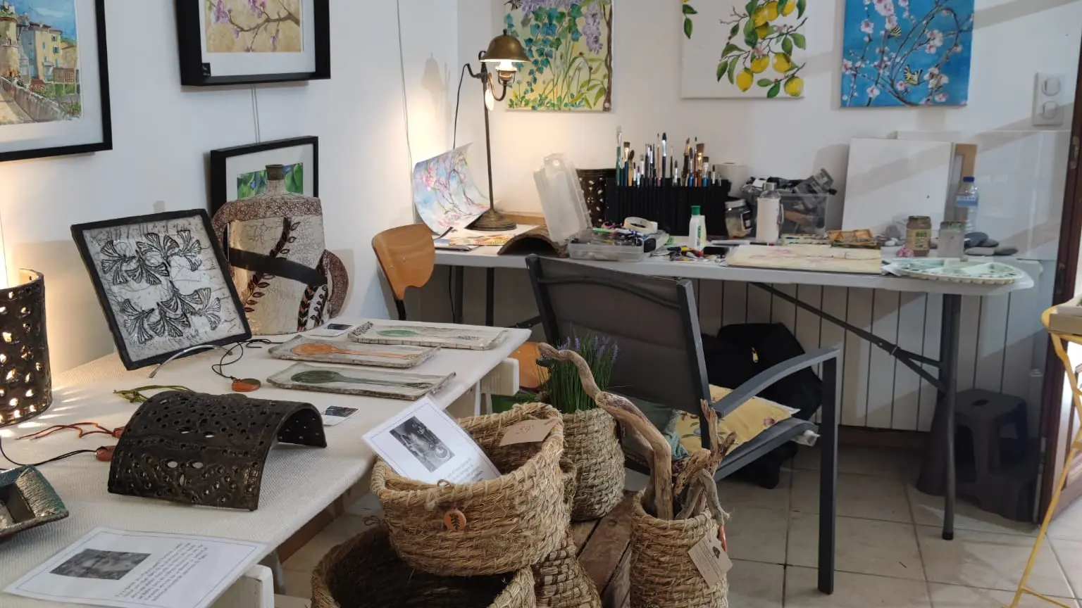 Nadine François-Wear, artiste peintre, Marie-Laure Camera, céramiste raku et Bénédicte Elluin, artisan vannière se réunissent pour exposer leurs œuvres.