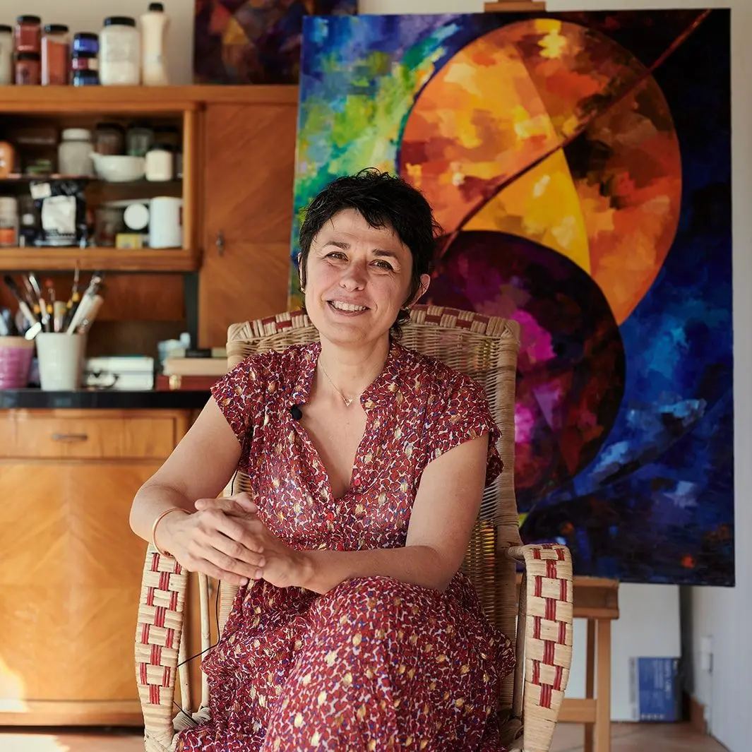 C’est dans cet environnement que le besoin d’espace s’est ancré en elle. Les couleurs et le mouvement se sont instillés au plus profond de son être pour y insuffler l’élan vital de la vie et son besoin de créer. Sa passion pour la peinture lui vient de sa plus tendre enfance.