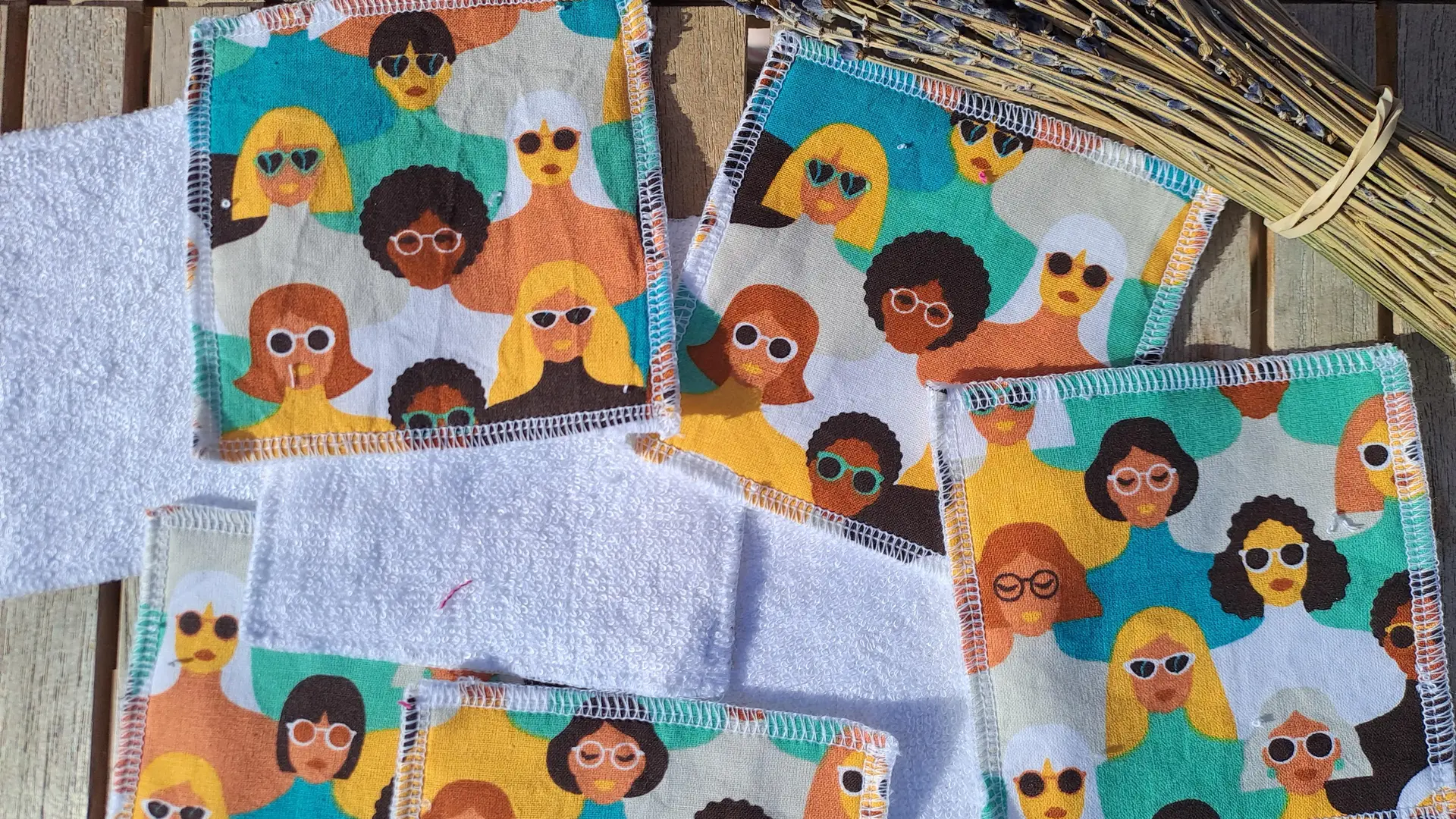 Nous vous proposons des créations éco-responsables, réutilisables et zéro déchet comme les lingettes lavables, les pochons paquet cadeau ou les feuilles de coloriage lavables.
