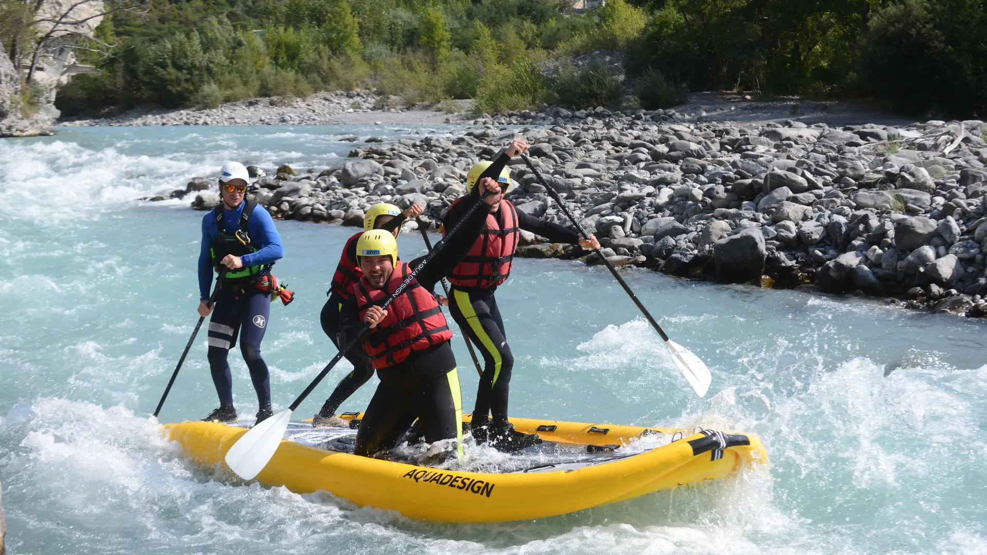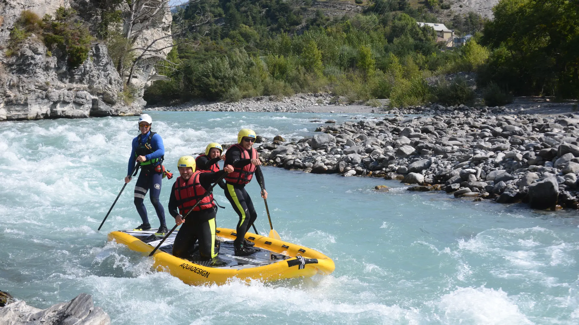 Rafting, airboat, hydrospeed, stand-up paddle géant, école de kayak, sur la Durance, l’Ubaye et le Guil. Structure à taille humaine / Prestations sur mesure.