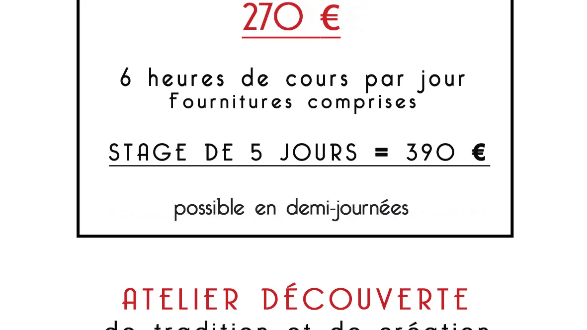 L'atelier est ouvert toute l'année. Les stagiaires sont reçus individuellement ou en petits groupes.