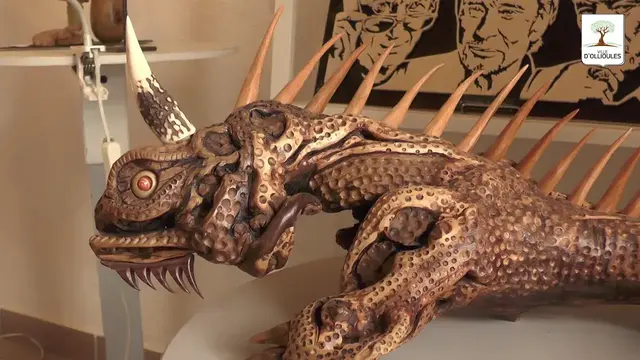Jean-Marc crée sur place des pièces uniques en bois chantourné, des tableaux sculptés, des objets de décoration divers et des œuvres tactiles destinées aux personnes non-voyantes.