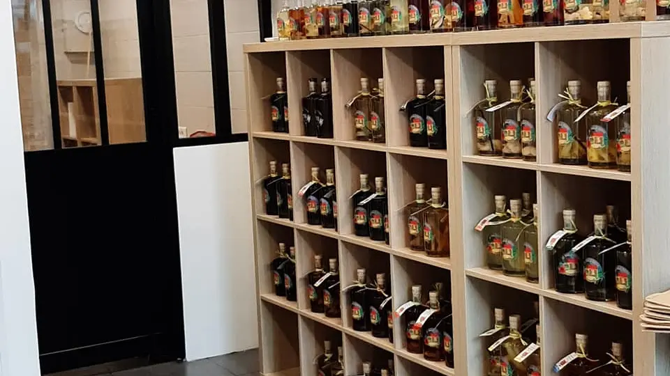 Nous utilisons un rhum blanc AOC de Martinique, des fruits, des épices, comme la vanille et la cannelle, mais aussi d'autres ingrédients comme des feuilles, du piment, du café, du cacao... Du sucre bien sûr pour favoriser l'exhalation des arômes. Il faut laisser macérer minimum 2 à 3 mois suivant les parfums pour obtenir un arrangé à maturité.