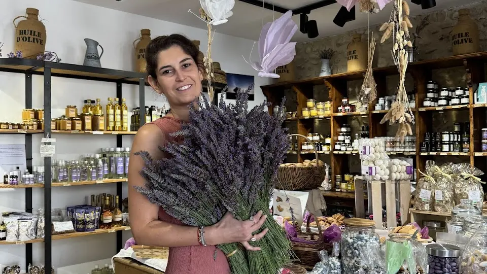 Vente en direct de leur production : lavande, miel, huile d’olive.