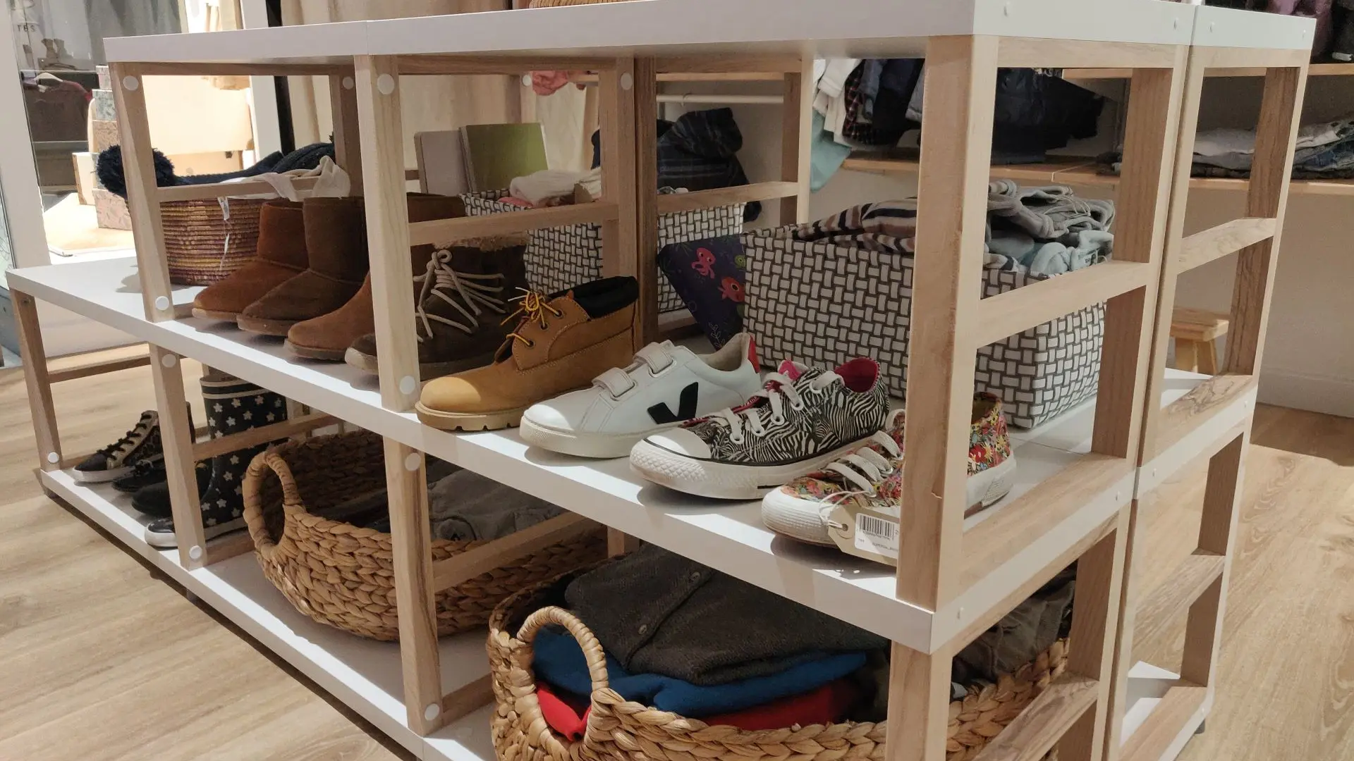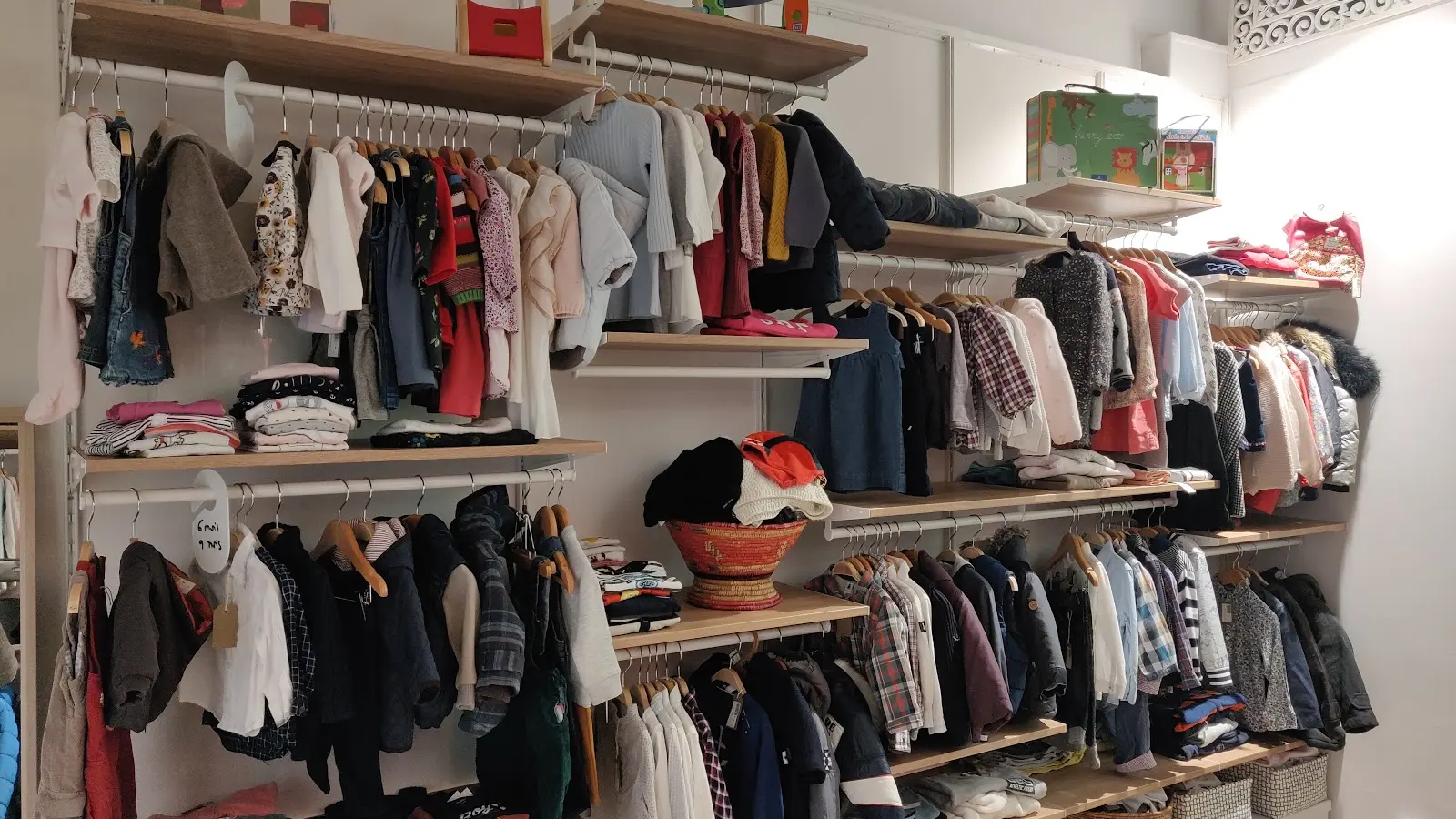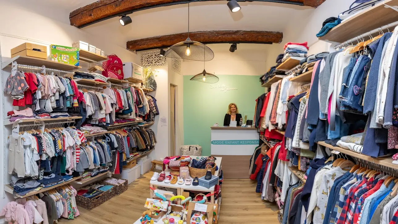 Vente de vêtements, chaussures, jouets et accessoires de puériculture de seconde main, ventre de produits de créateurs pour enfants.