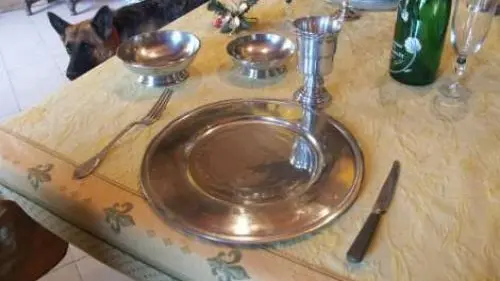 Spécialisée en création de vaisselle d’étain du moyen âge à nos jours (assiettes, pichets, timbales, plats, soupières… ainsi que bougeoirs, candélabres et bien d’autres objets).