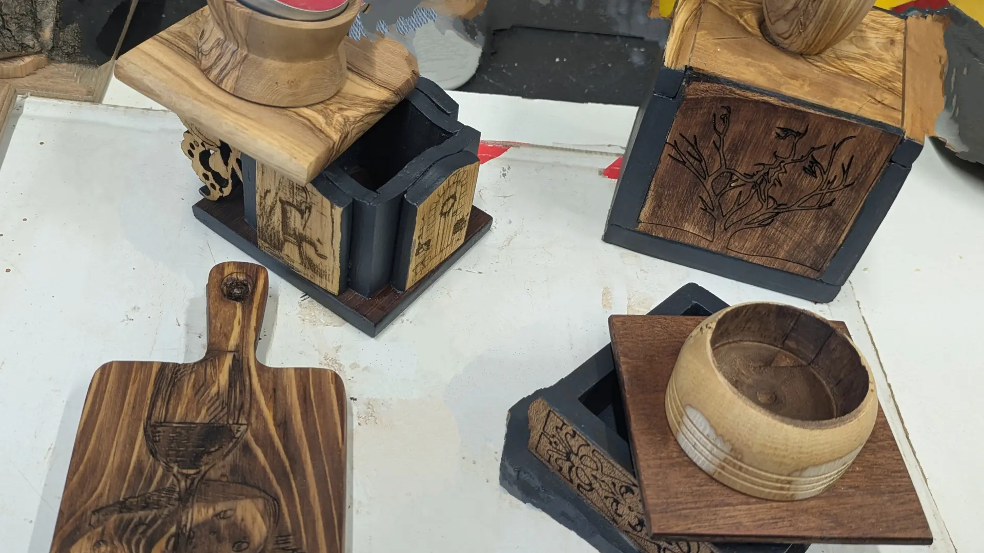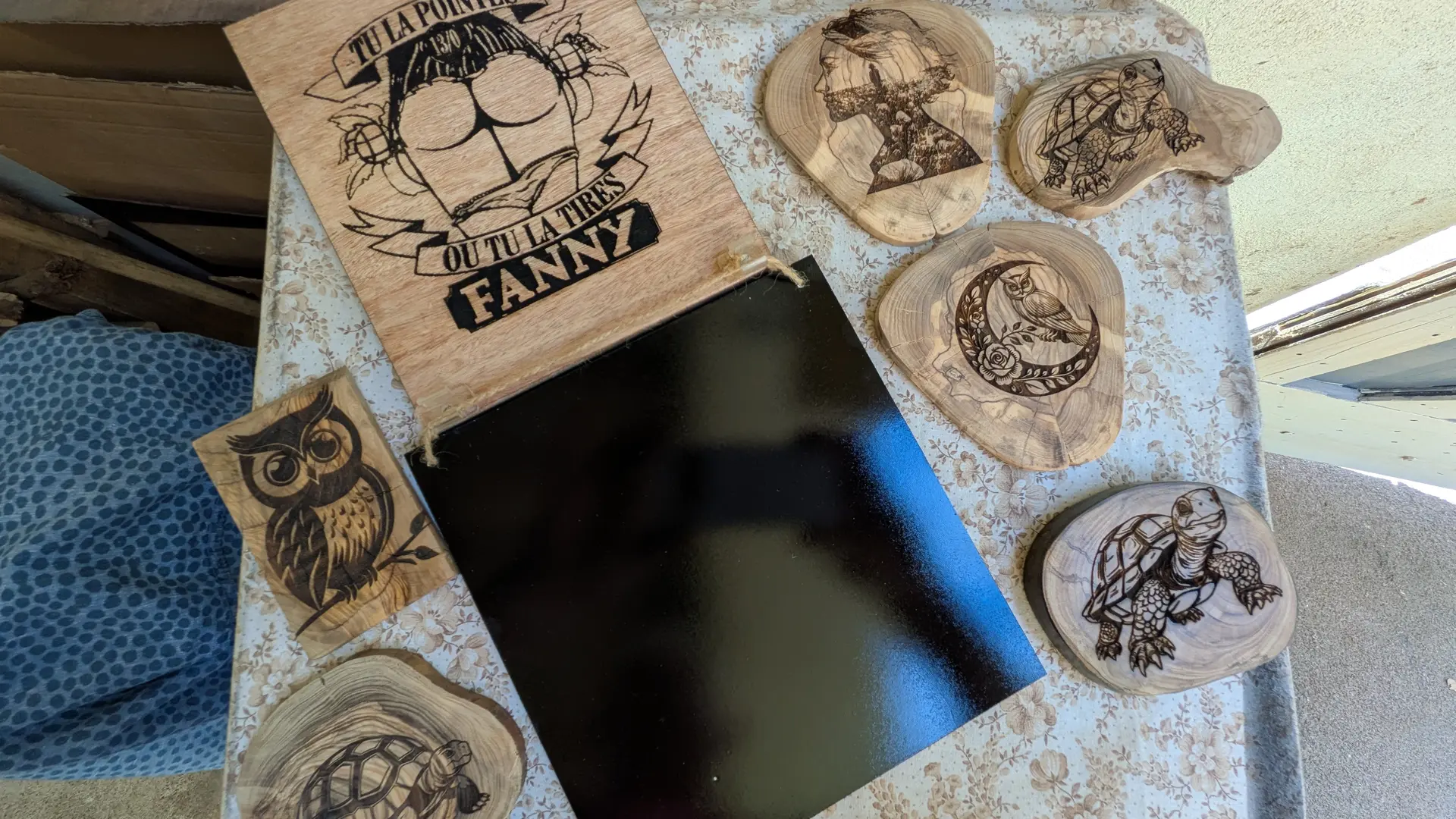 Créations d'objets d'art uniques et personnalisés selon votre demande : lampes, magnets, bougeoirs, coquetiers, toupies, jeux …