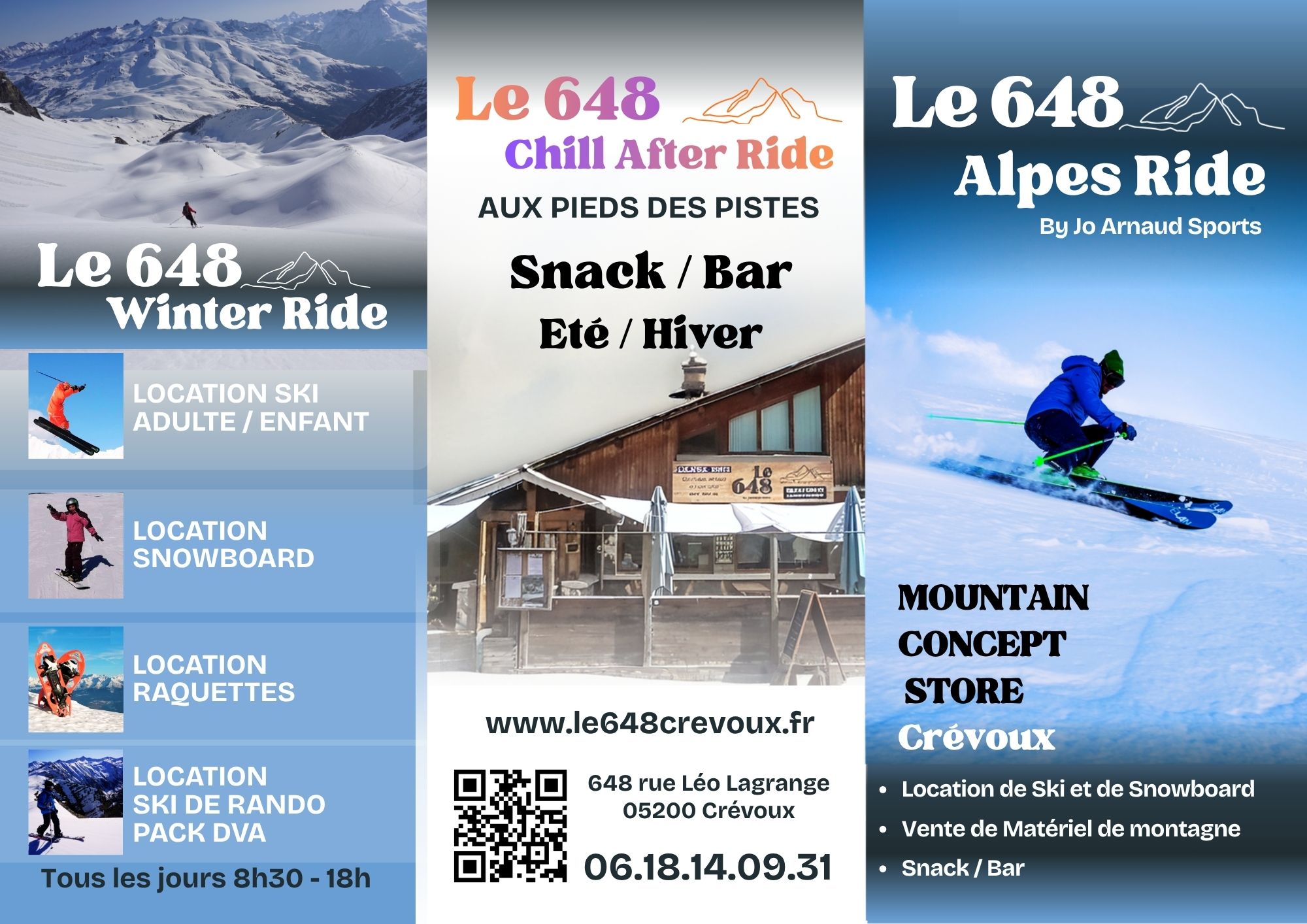 Au cœur du village et aux pieds des pistes, le 648 Crévoux vous équipe pour profiter pleinement de la montagne. Ski alpin, snowboard, ski de randonnée, raquettes, luges ou DVA : notre matériel est entretenu avec soin et renouvelé régulièrement pour garantir confort et sécurité.