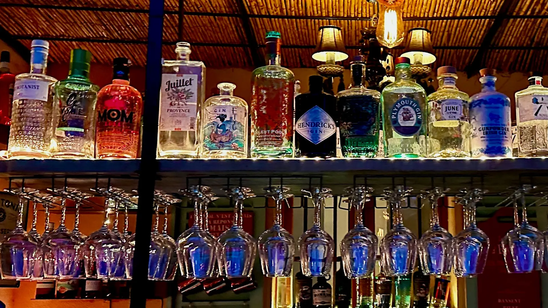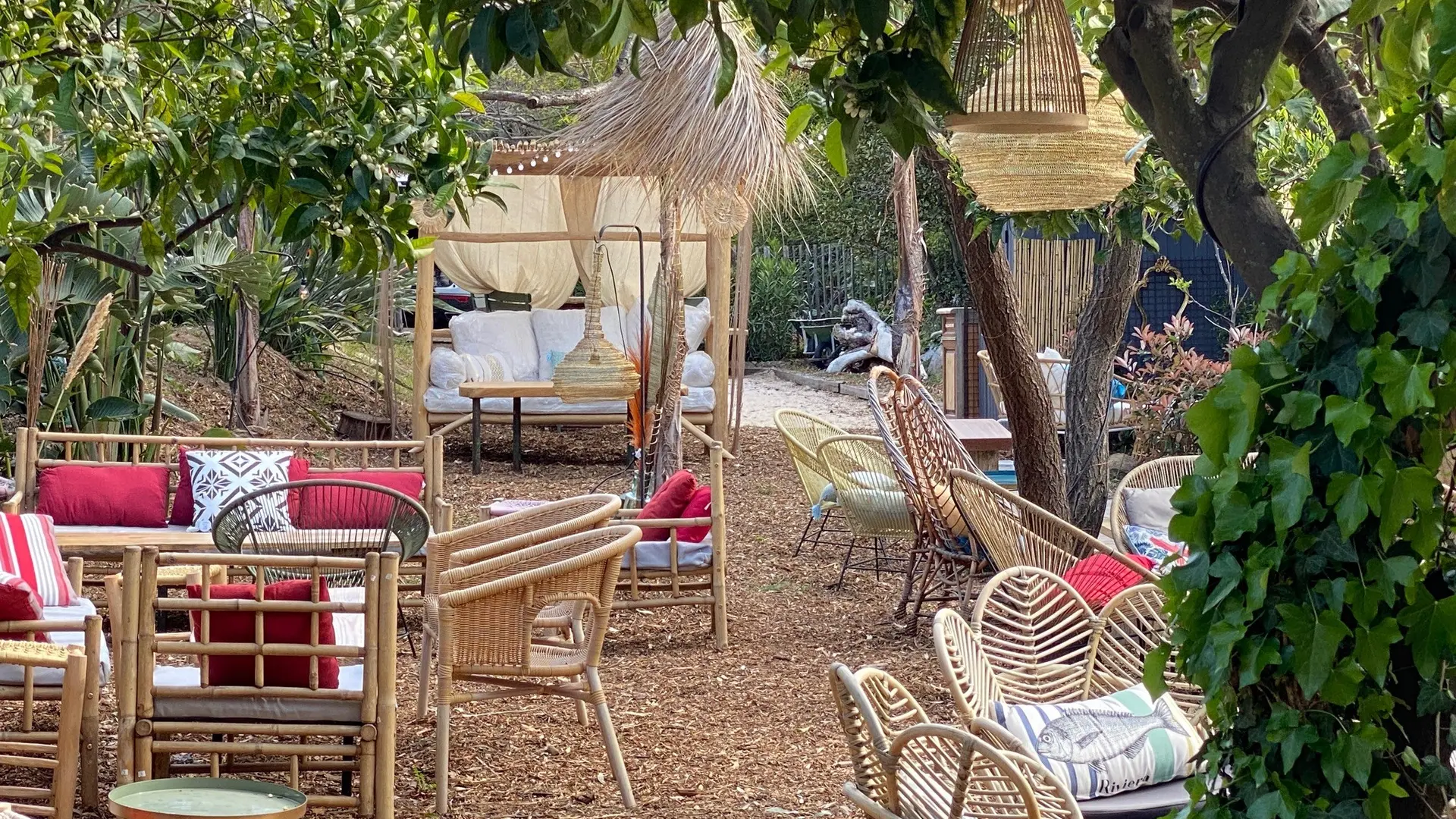 Bar à Cocktails, à Gin et Tapas dans un jardin proche de la plage de Saint clair au Lavandou.