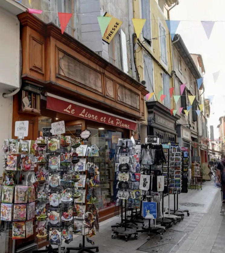 Située dans le centre historique de L'Isle-sur-la-Sorgue, la librairie "Le Livre et la Plume" est un havre de paix pour les amateurs de lecture.