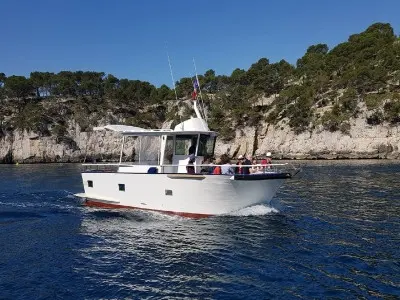 - Ils s'engagentLe groupement des Bateliers Cassidiens propose au public des bateaux de capacité variable. Les 12 places séduisent les visiteurs en quête de plus de proximité et de convivialité. C'est le cas du Nounours, un navire de 9 m qui date de 1974. Construction de bois, il a conservé l'allure des vedettes traditionnelles. Il est parfaitement habilité à organiser des promenades en mer au sein du Parc national des Calanques. Chaque circuit conduit les passagers vers 3, 5 ou 8 calanques en suivant le contour découpé de la côte.