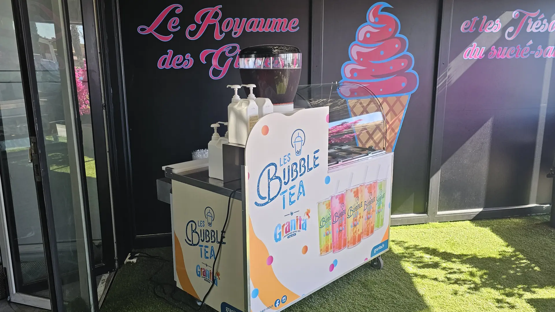 Vente à emporter de glace artisanale, glace italienne. Granita, Bubble Tea