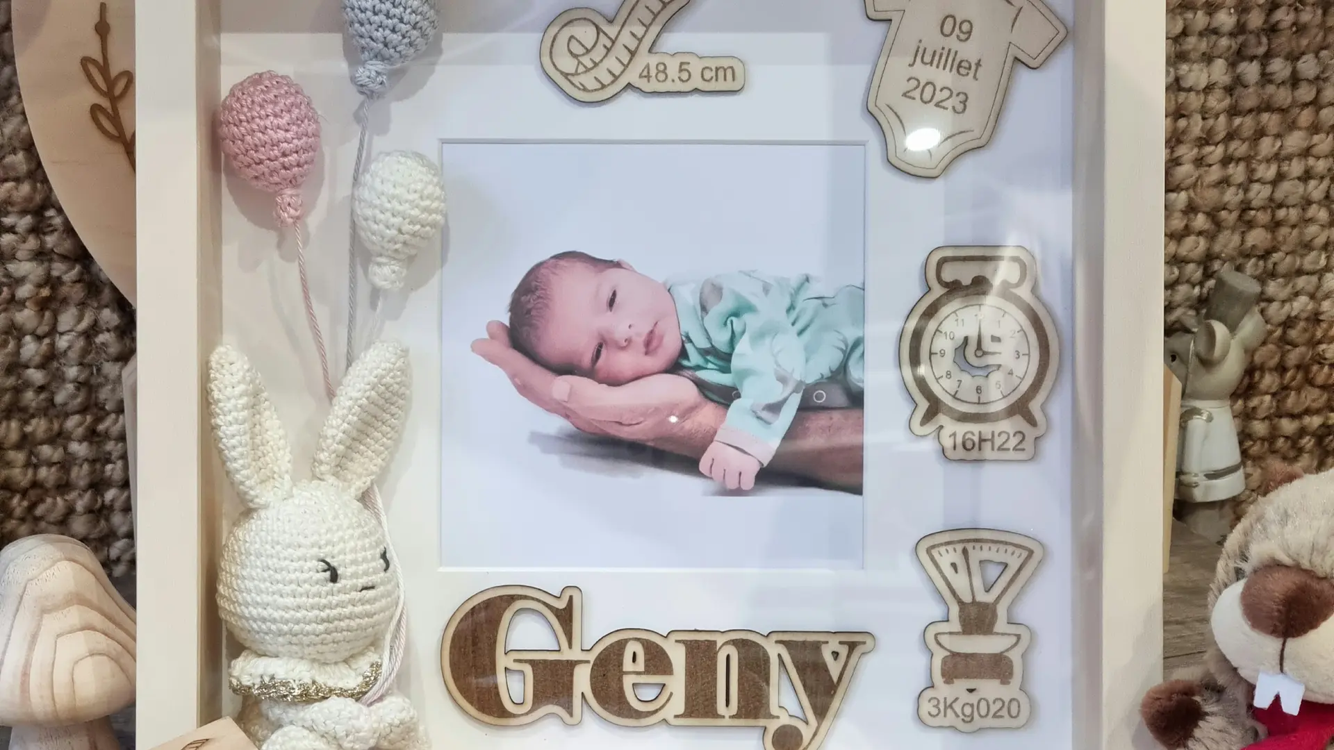 Créations, personnalisation, cadeaux,, naissance, mariage, baptême, Noël. Confection pour bébé sur commande. Transfert, sublimation, broderie, gravure tout support.