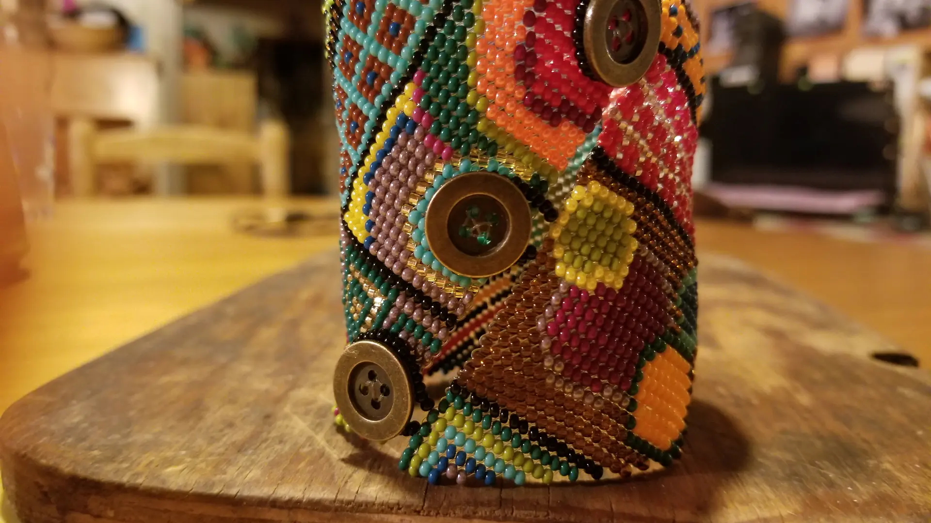 Je tisse, depuis plus de 10 ans, des bracelets et autres bijoux, avec une méthode personnelle qui prend beaucoup de temps (une semaine en moyenne pour un bracelet manchette) mais le résultat est solide.