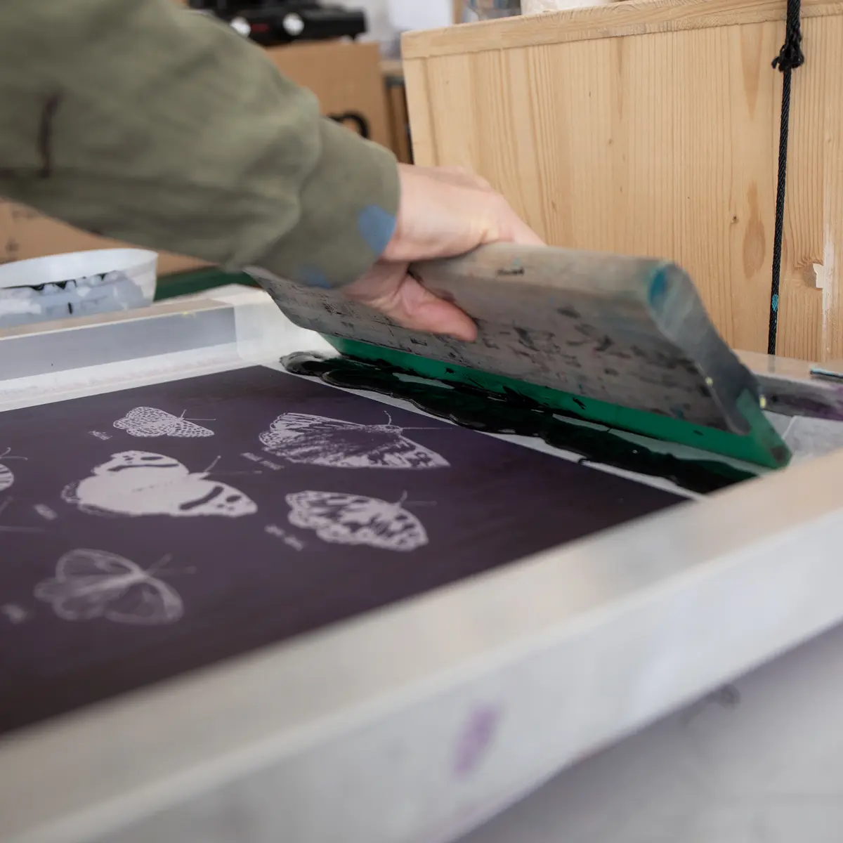 L'atelier propose des stages découverte de sérigraphie sur deux demi-journées. Chaque participant élabore son propre motif et l'imprime ensuite sur papier, tote bag et t-shirt.