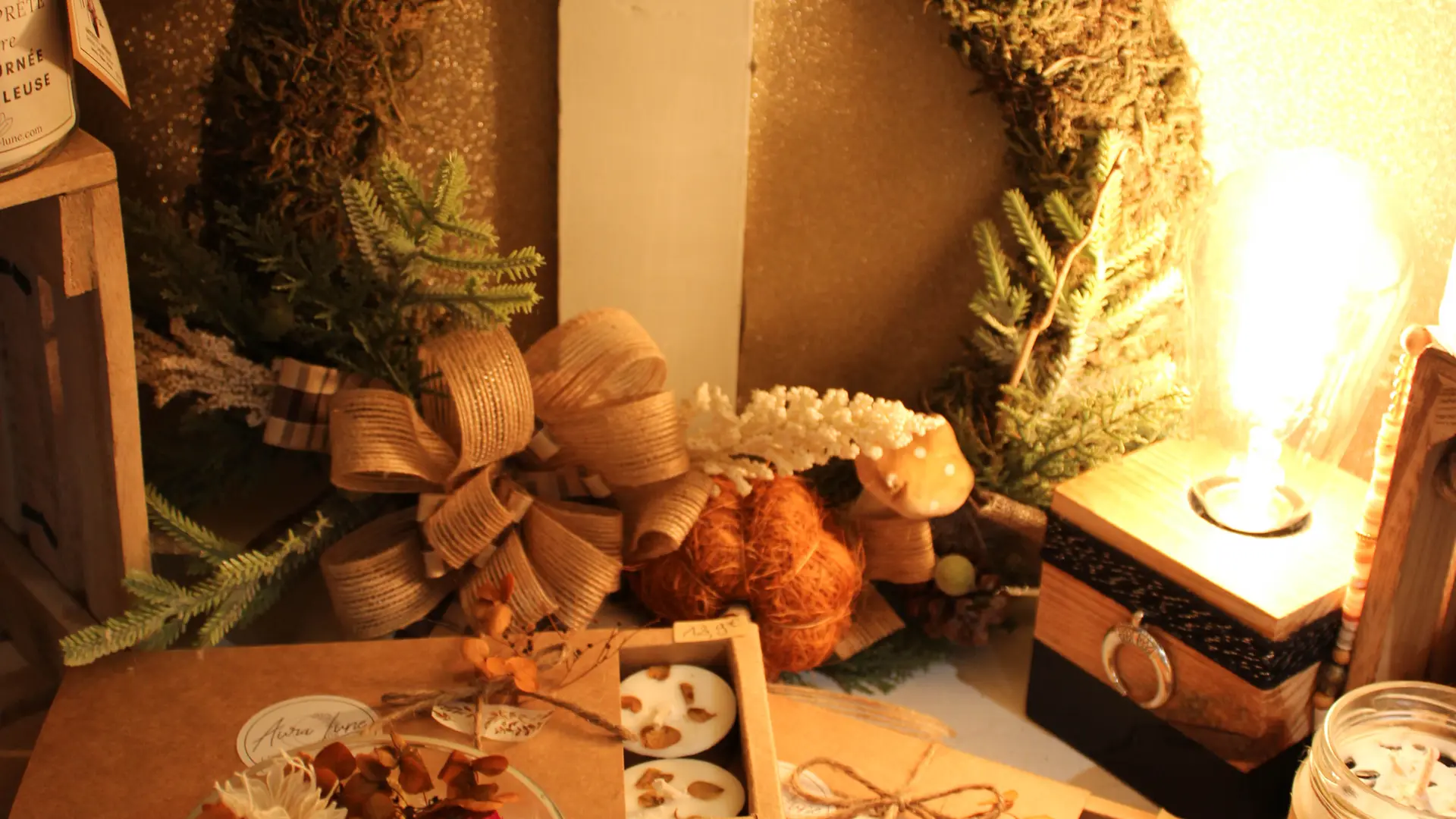 Elisa Gérante de la boutique, créatrice de la marque LMS WoodConcept, travail d'impression sur bois, créations d'objets tendances : luminaires, bougeoirs, dessous de verre, couronne de fleurs séchées... Créations personnalisables également.