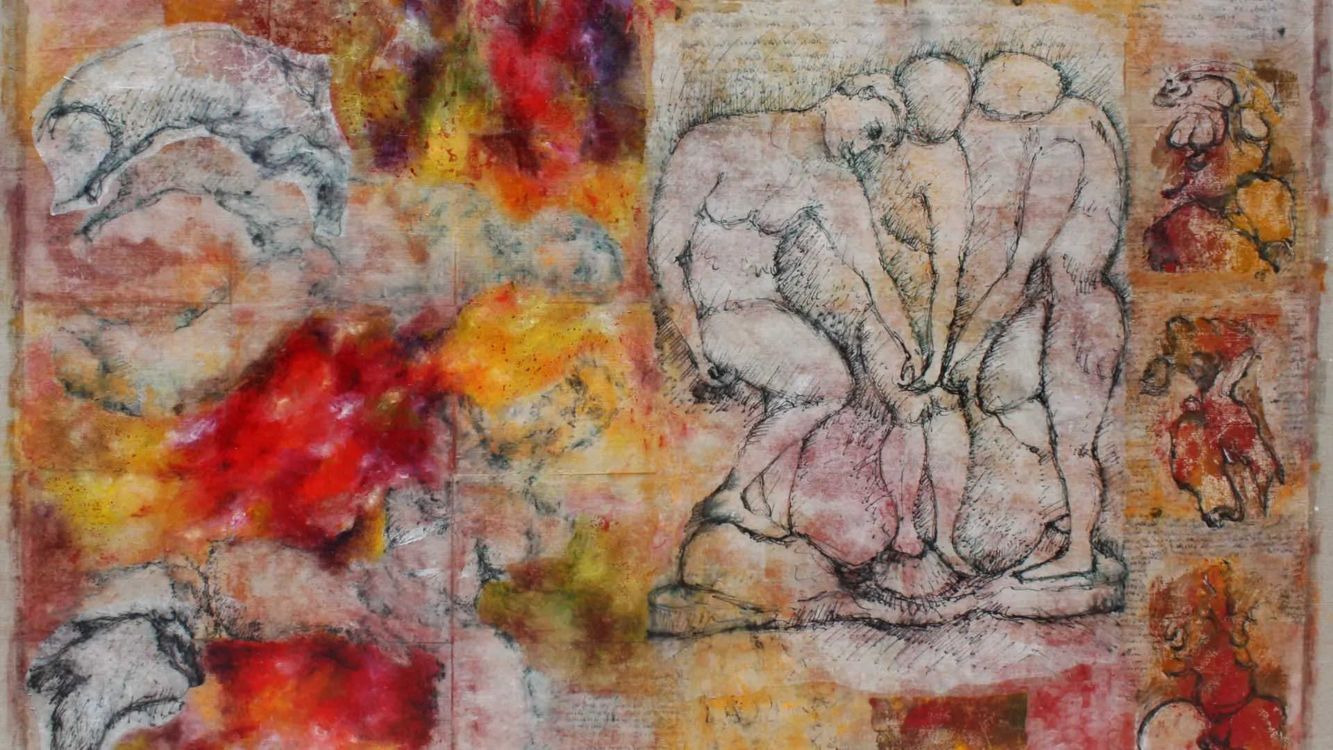 C’est bien du métier de la peinture dont il s’agit dans ses recherches plastiques. La toile de lin préparée par l'artiste donne à voir des dessins, des gravures, des monotypes, des documents iconographiques et des écritures qui sont ensuite « chargés » par la couleur, les pigments, les encres ainsi que des glacis à l'huile.