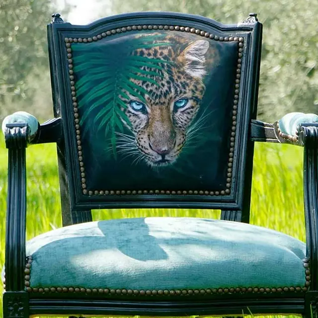 Elle s'est spécialisée dans la rénovation de mobilier ancien tant au niveau des fauteuils, canapés et aussi mobiliers qu'elle illumine de tissu personnalisés ou d'éditeurs et auxquels elle ajoute des patines naturelles à base d'eau pour leur donner à nouveau vie.