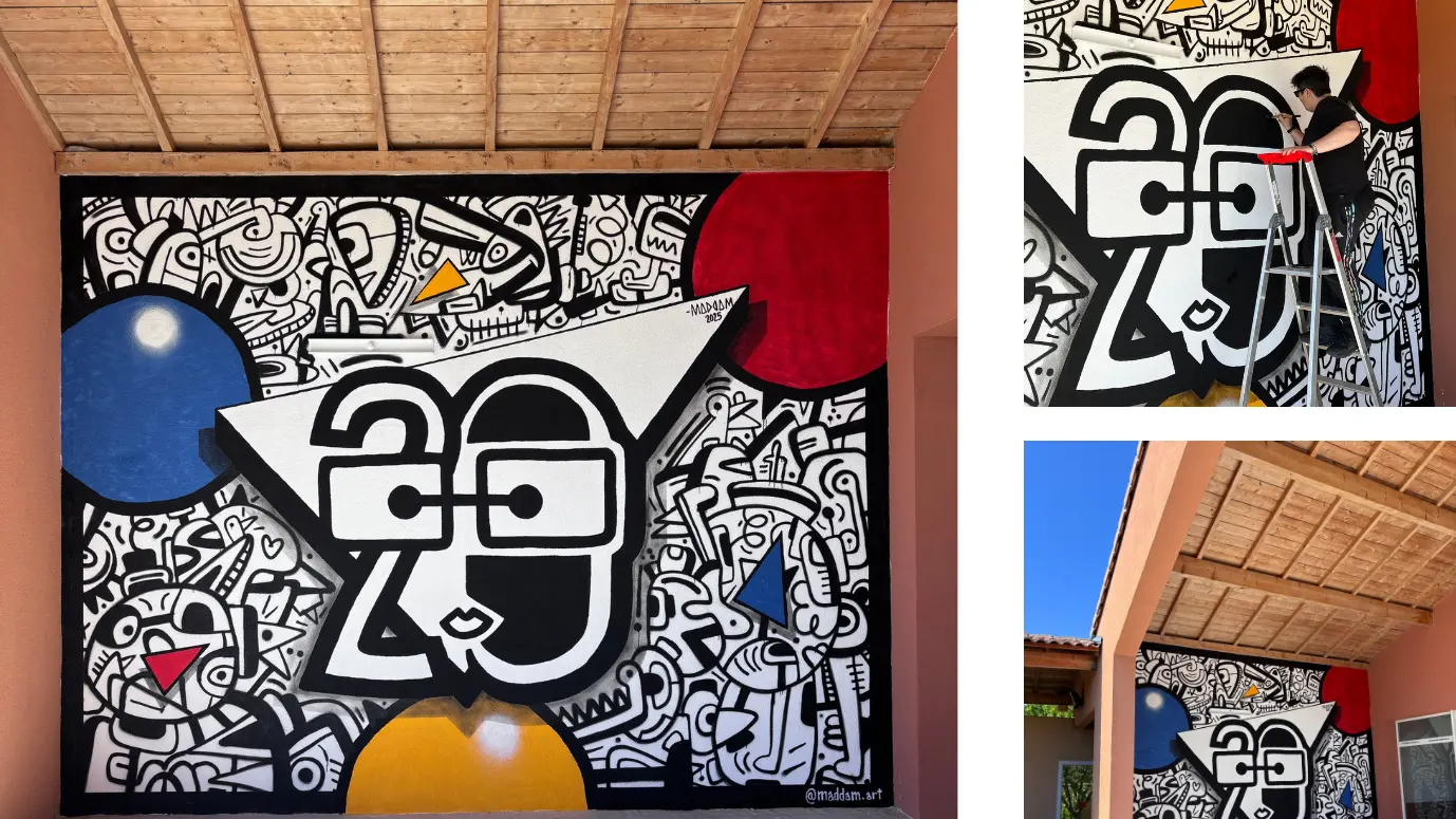 Entre fresques monumentales, toiles et performances live, MADDAM investit aussi bien l’espace urbain que les lieux de vie — hôpitaux, résidences, festivals ou entreprises — pour y insuffler humanité et poésie.