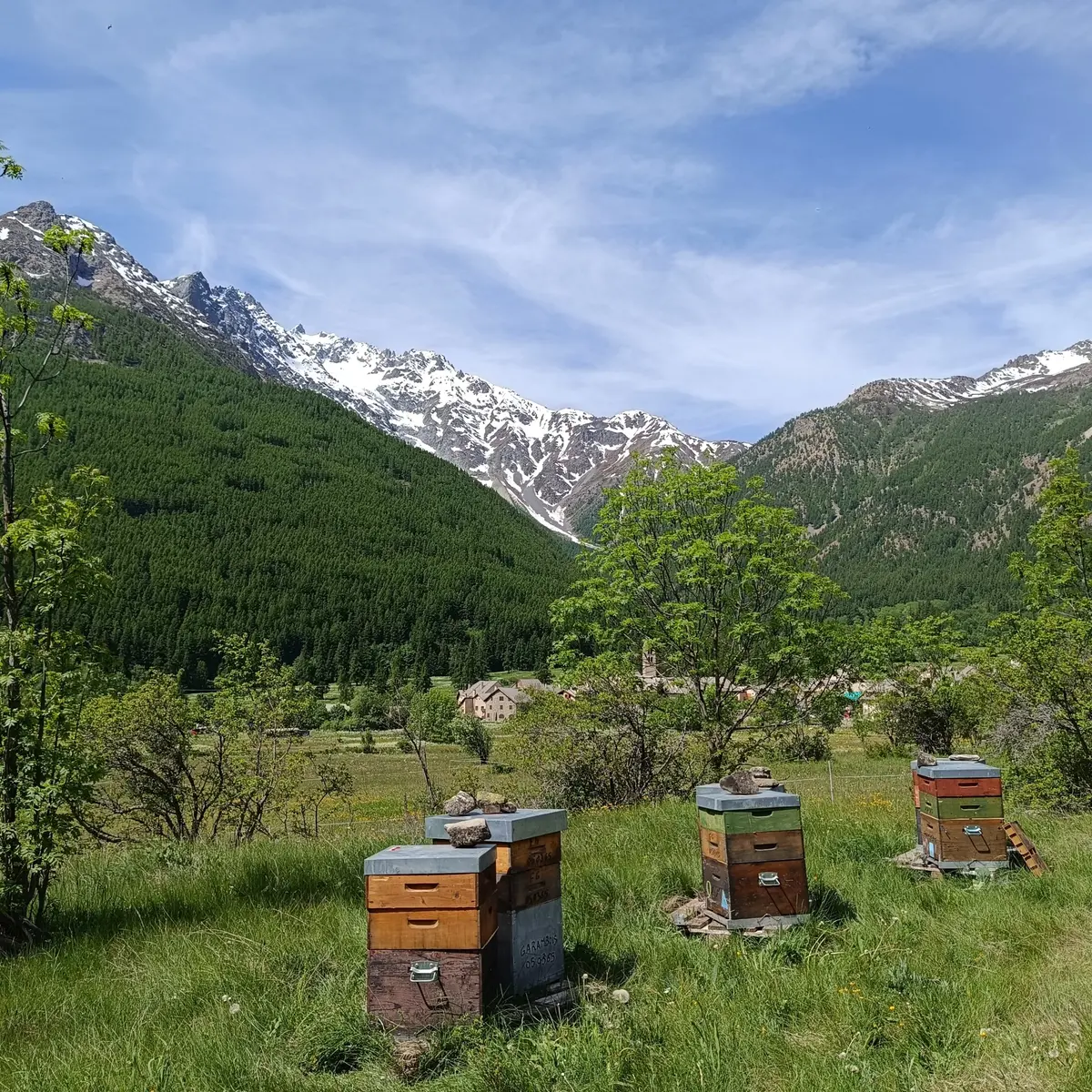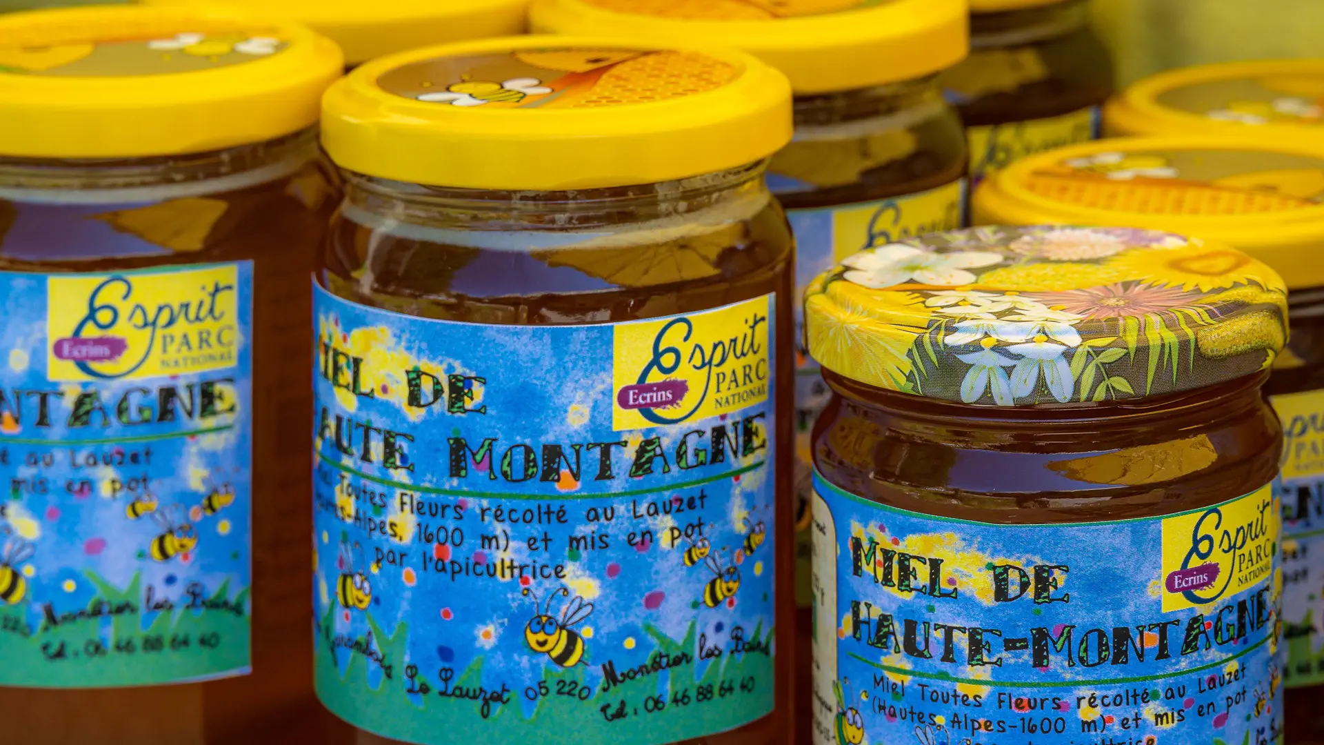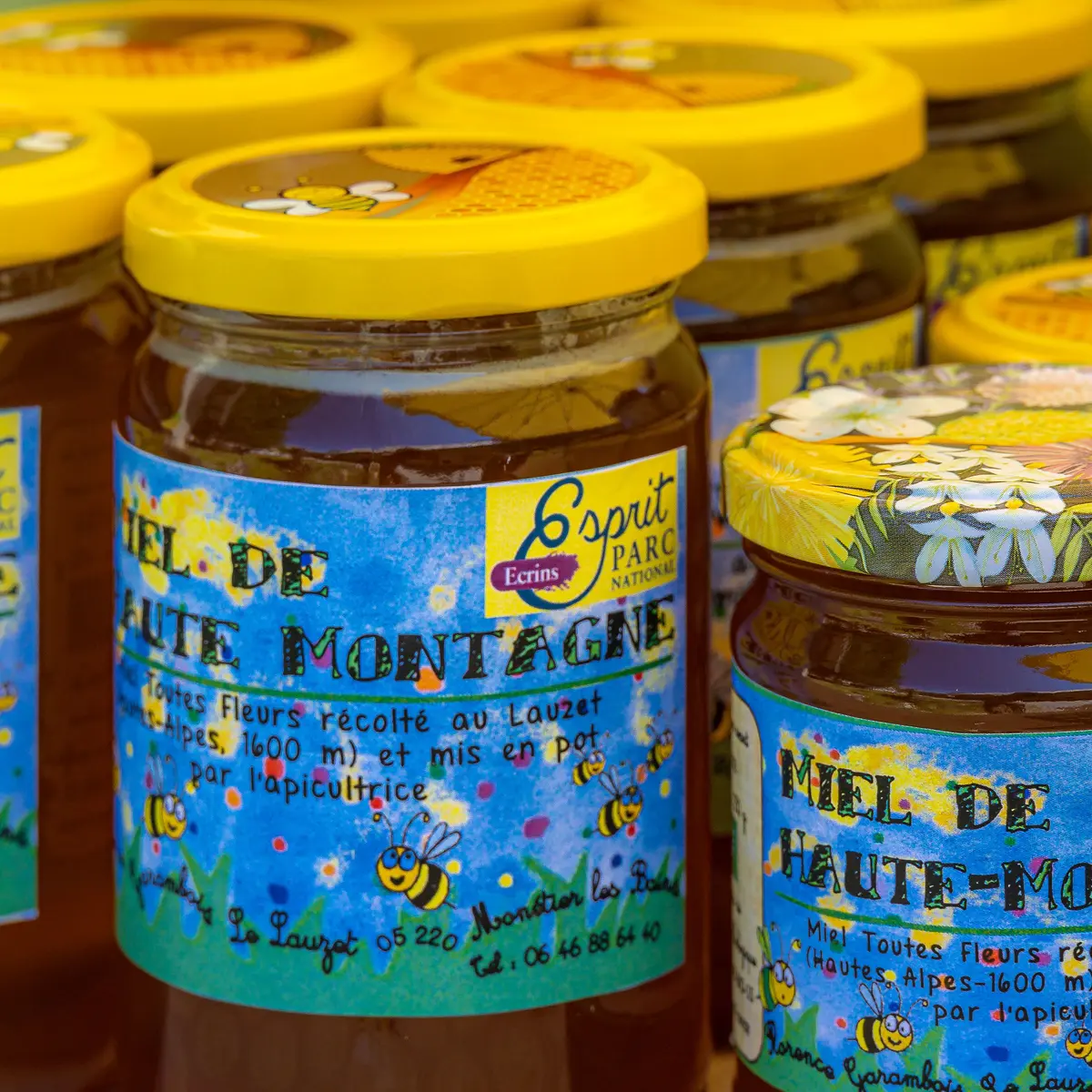 Nos abeilles produisent différents miels dans la région, labellisés Agriculture Biologique, dont un miel de haute-montagne récolté dans la haute vallée de la Guisane et commercialisé sous la marque Esprit Parc des Écrins.