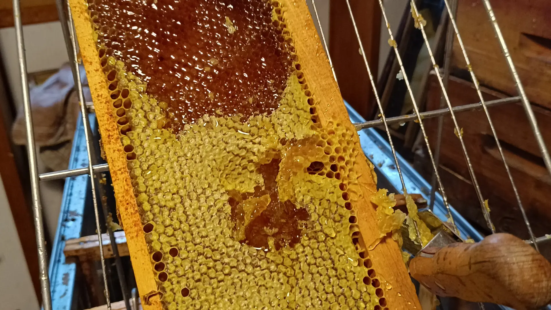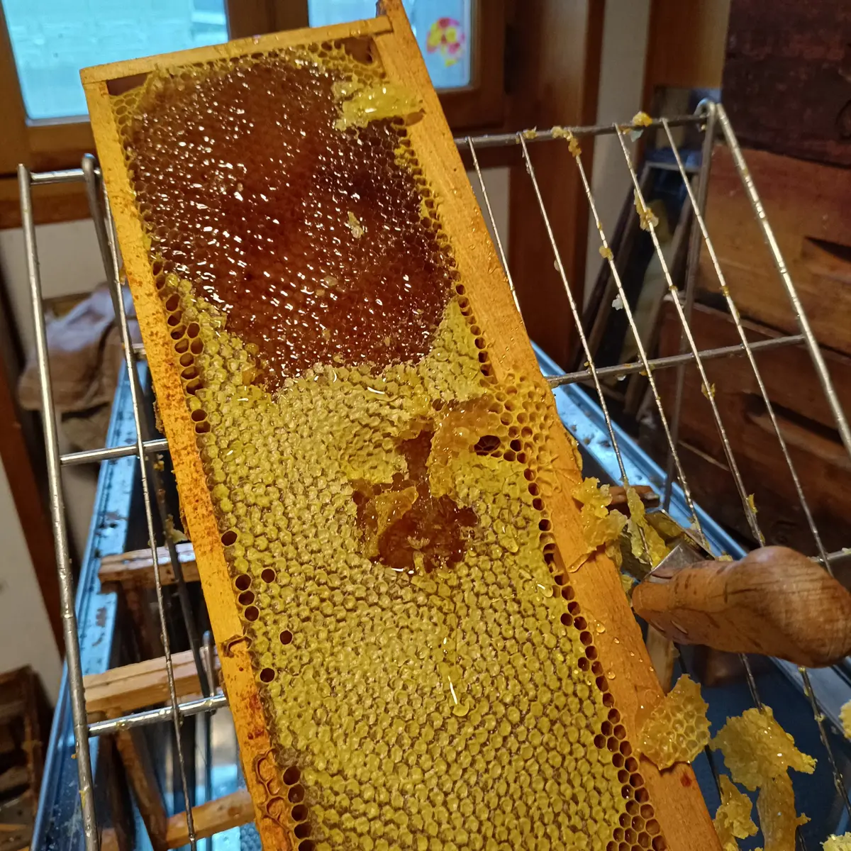 Nous produisons également de la propolis et nous transformons une partie de notre production en pâtisseries et confiseries : mielleux, sablés au miel, pains d’épices pur miel, Chocomiel, miel d'écureuil, amandes grillées au miel.
