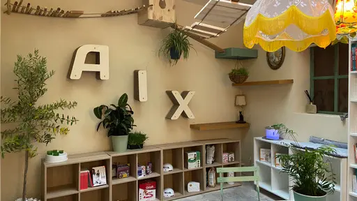 130m2 de librairie aménagés en paradis pour les 7 chats de refuge. Des livres et des chats... un lieu serein où les chats sont rois ! A l'exception des coins "enfants" et "ados" qui font explicitement la part belle aux livres sur les félins, la librairie aixoise se veut généraliste.