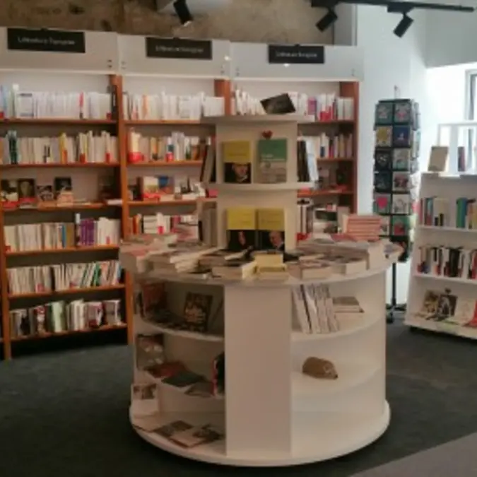 Librairie généraliste, grand espace jeunesse, espace musique.