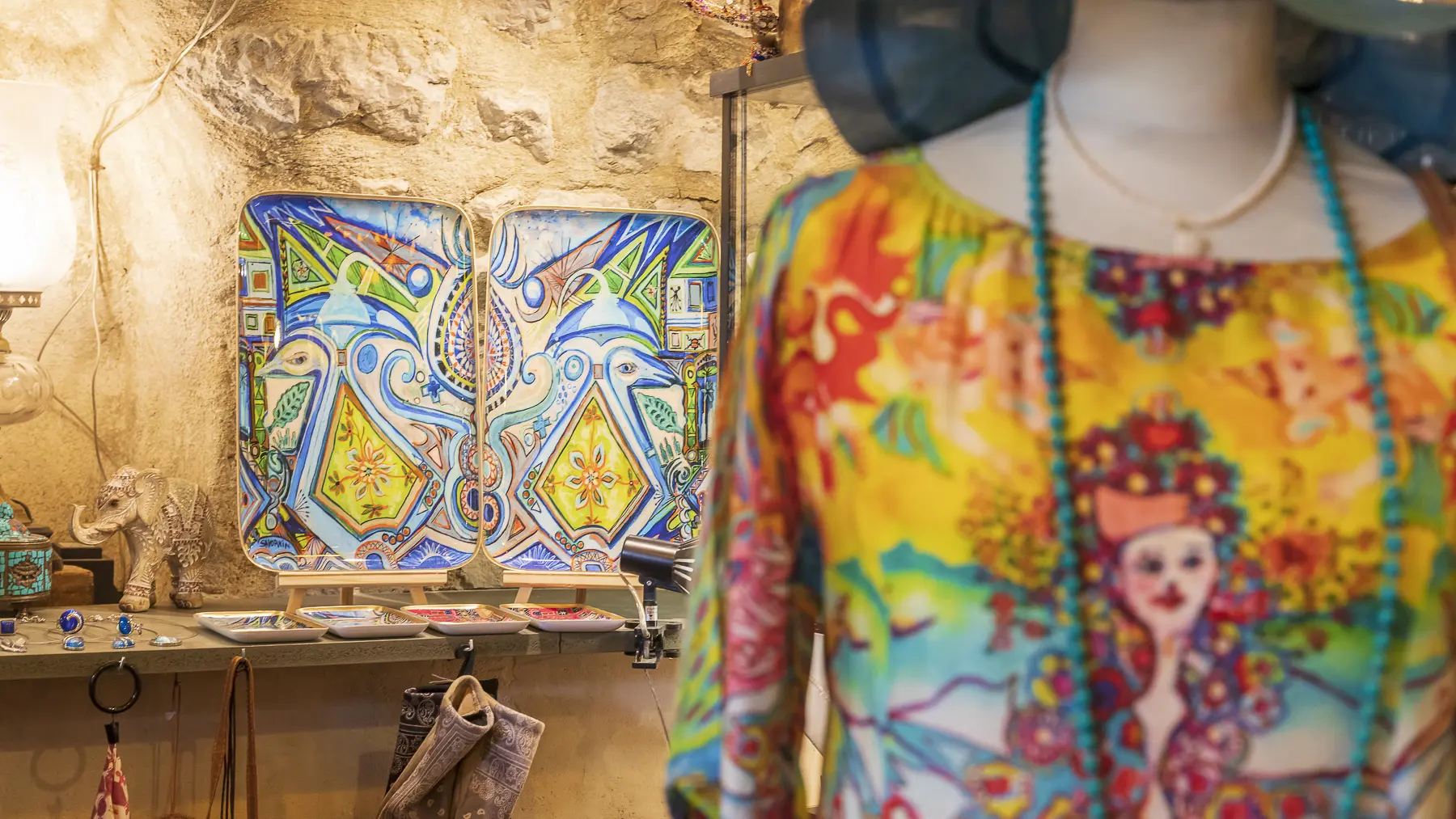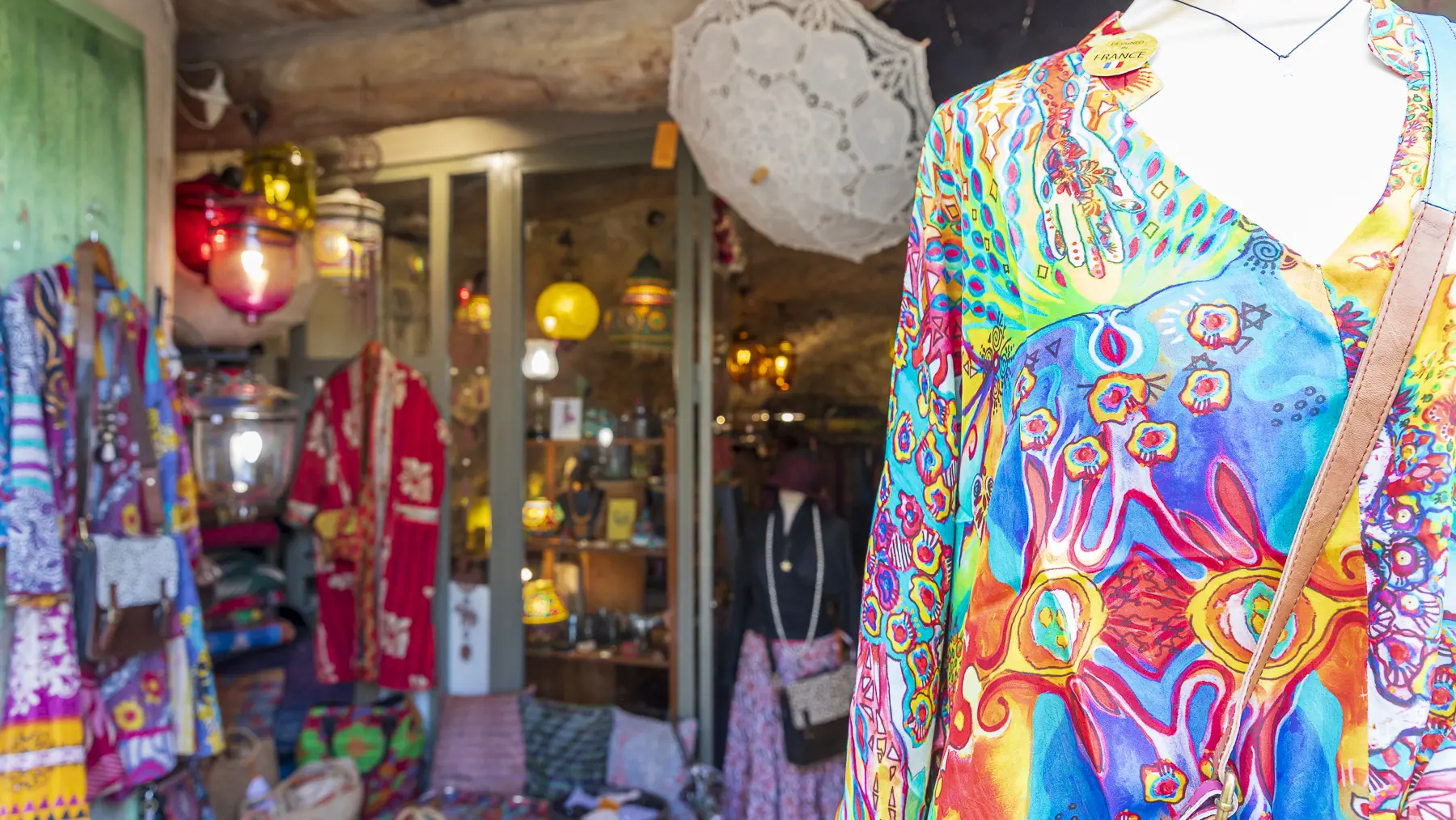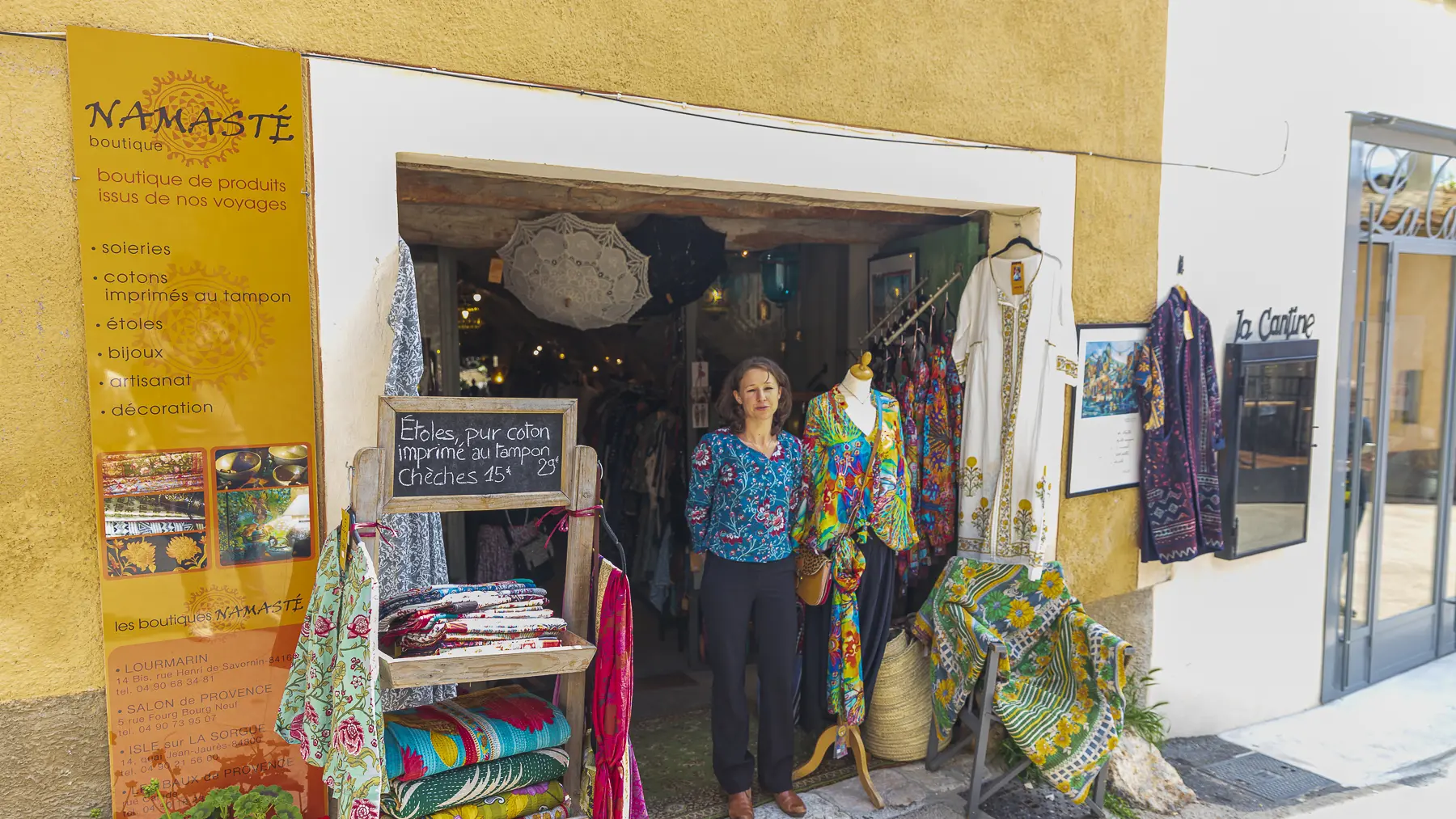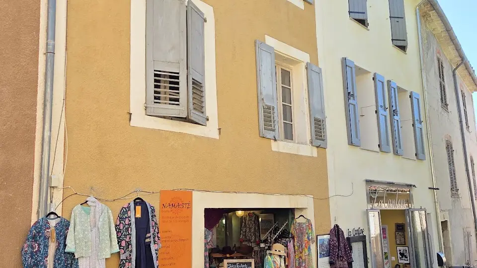 La boutique Namasté de Moustiers-Sainte-Marie a ouvert en 2012 et vous propose les collections de prêt à porter de la marque Namasté-Lourmarin et de l'Héliquadrisme, collection de soie à partir des œuvres et du concept pictural de Jean François Savornin.