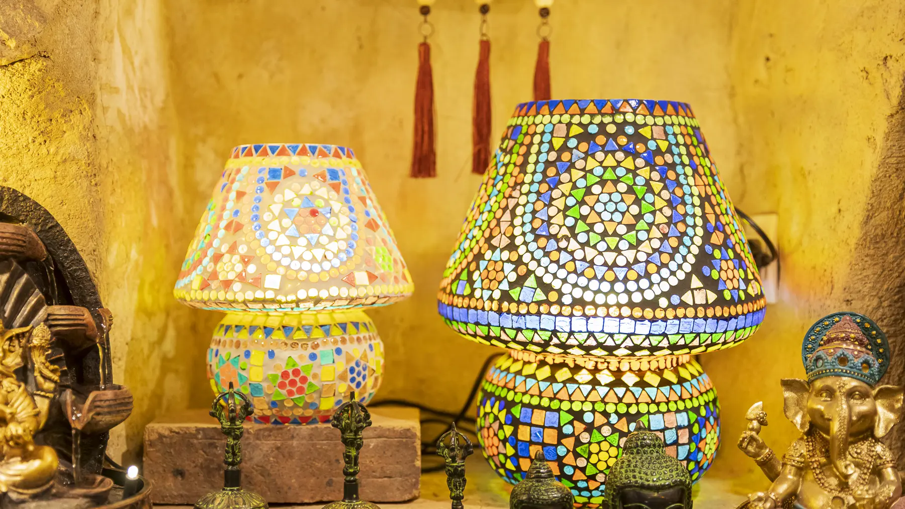 Vous pourrez également retrouver les luminaires de couleurs et autres objets dénichés lors de leurs voyages : bronzes, bols chantants, objets divers et sacrés. Textiles pour la maison, coussins, couvres lits... et tout le savoir-faire artisanal de cette Inde magique.