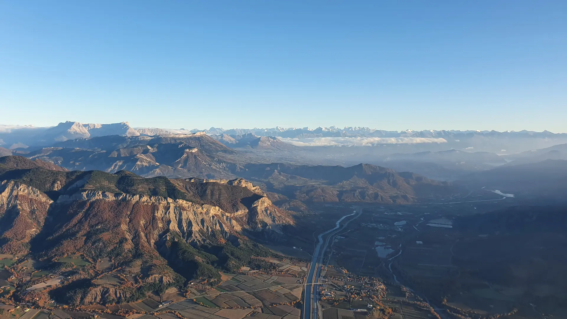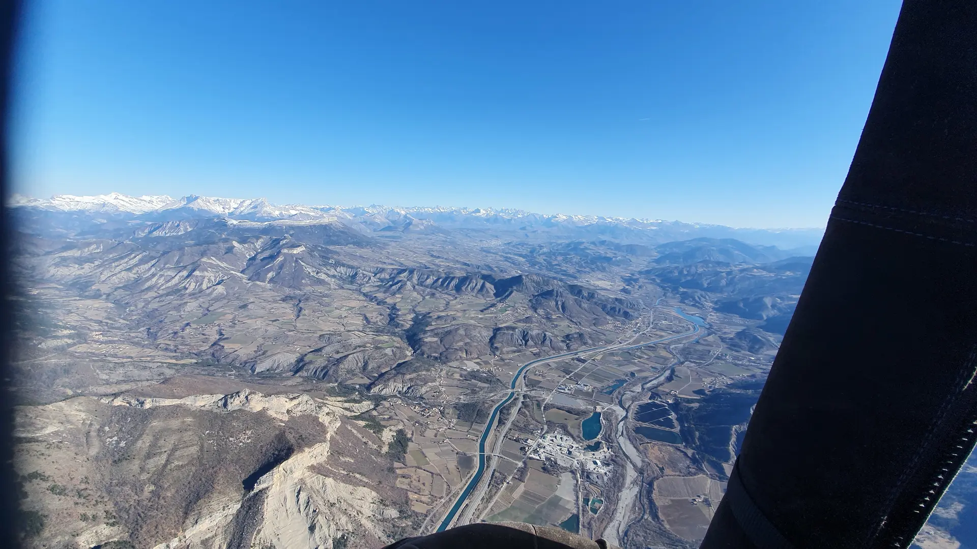 La zone de survol : des environs du village de Curbans en direction de Sisteron au gré des vents, au dessus de la Durance.