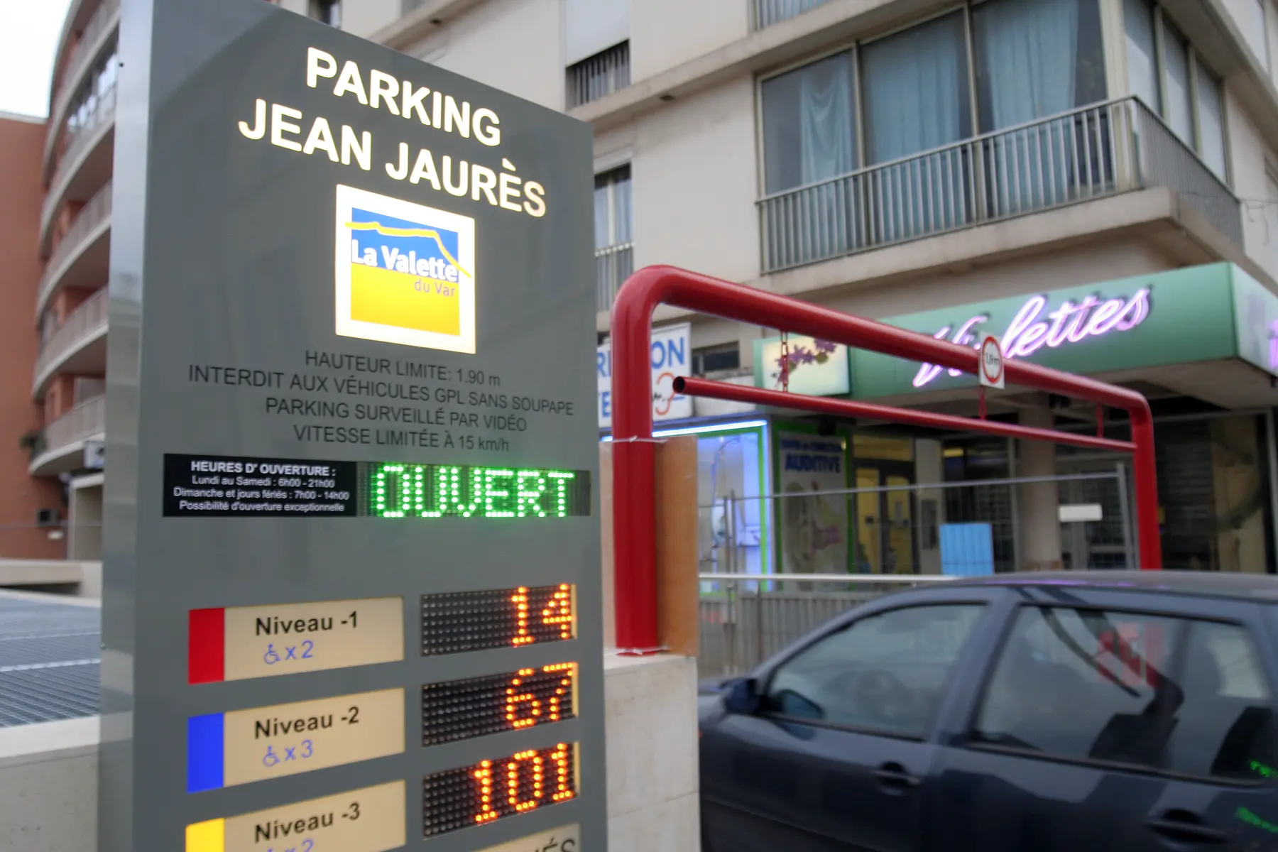 Stationnement payant en-dehors des horaires d'ouverture indiquées.