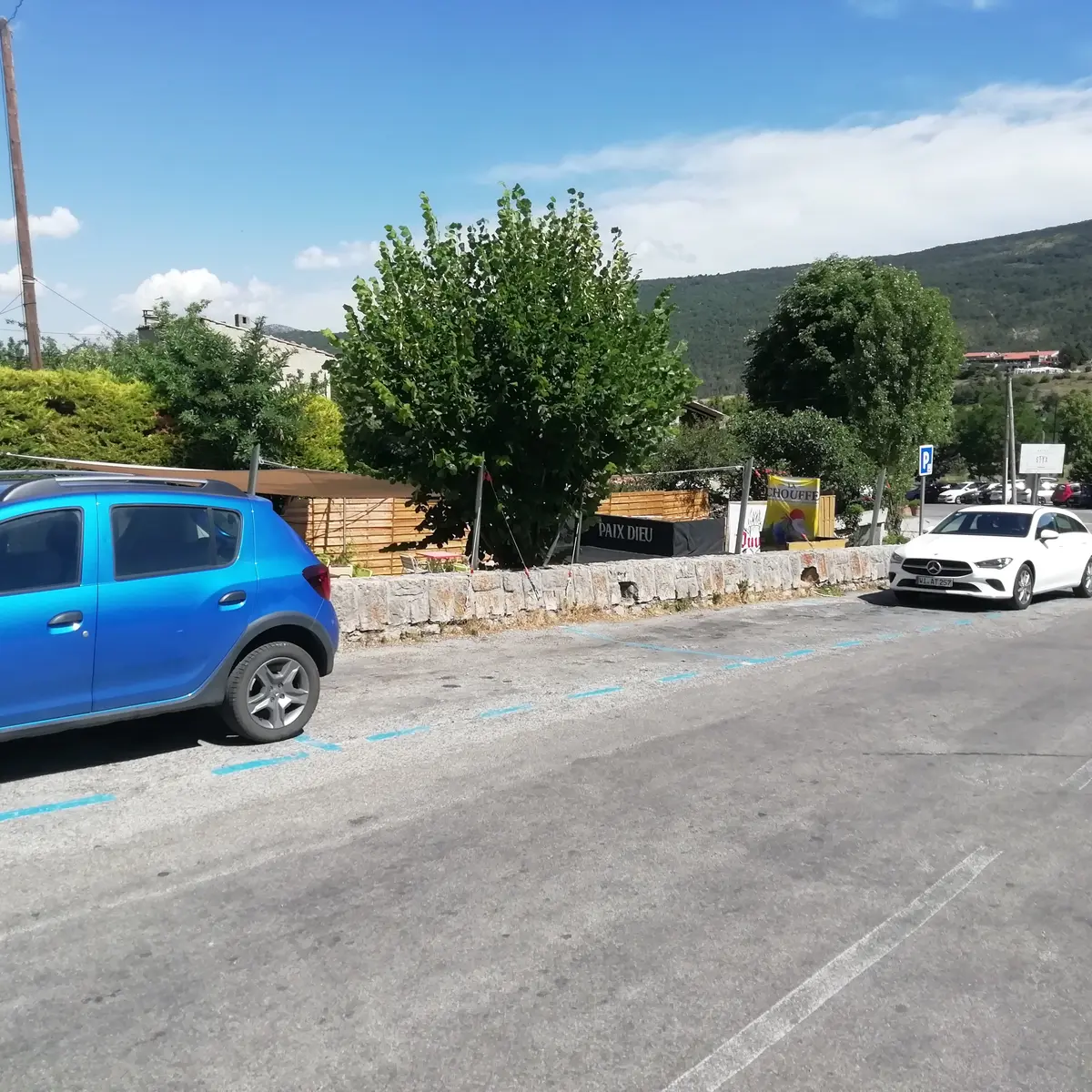 Zone bleue sur les emplacement du haut, puis stationnement libre et gratuit.