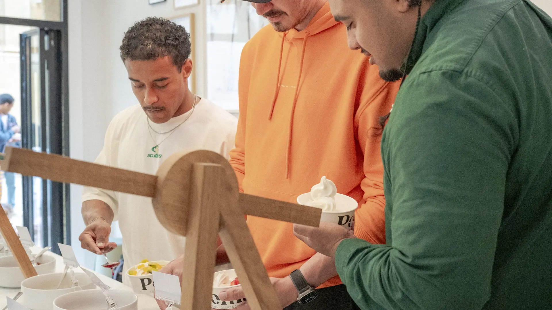 Choisissez une ou plusieurs bases parmi 4 parfums de yaourt glacé, dont des options végétales pour satisfaire tous les régimes. Ensuite, direction le bar à toppings : plus de 30 garnitures vous attendent, allant des fruits frais de saison, aux biscuits, bonbons, oléagineux, sans oublier les coulis et gâteaux chauds (cookies, brownies, pistache et bien d'autres).
