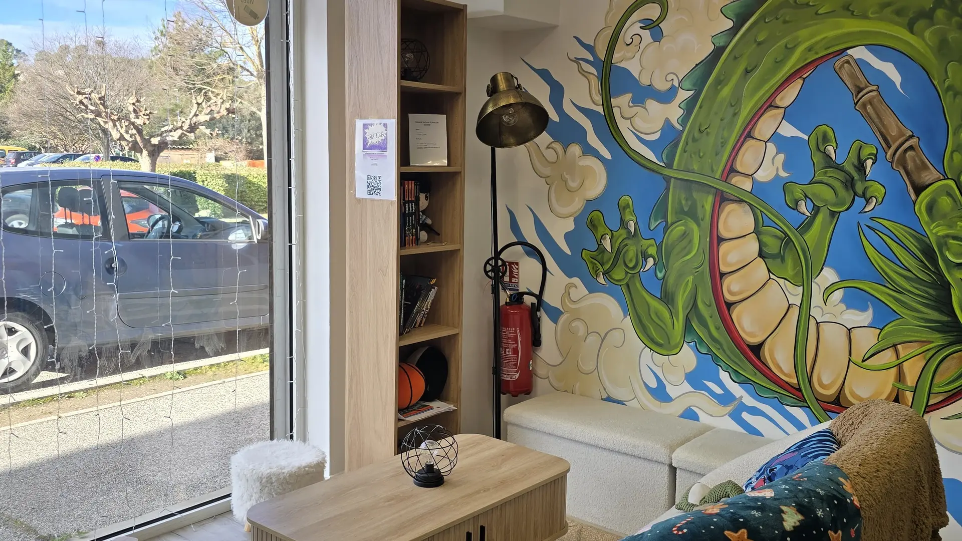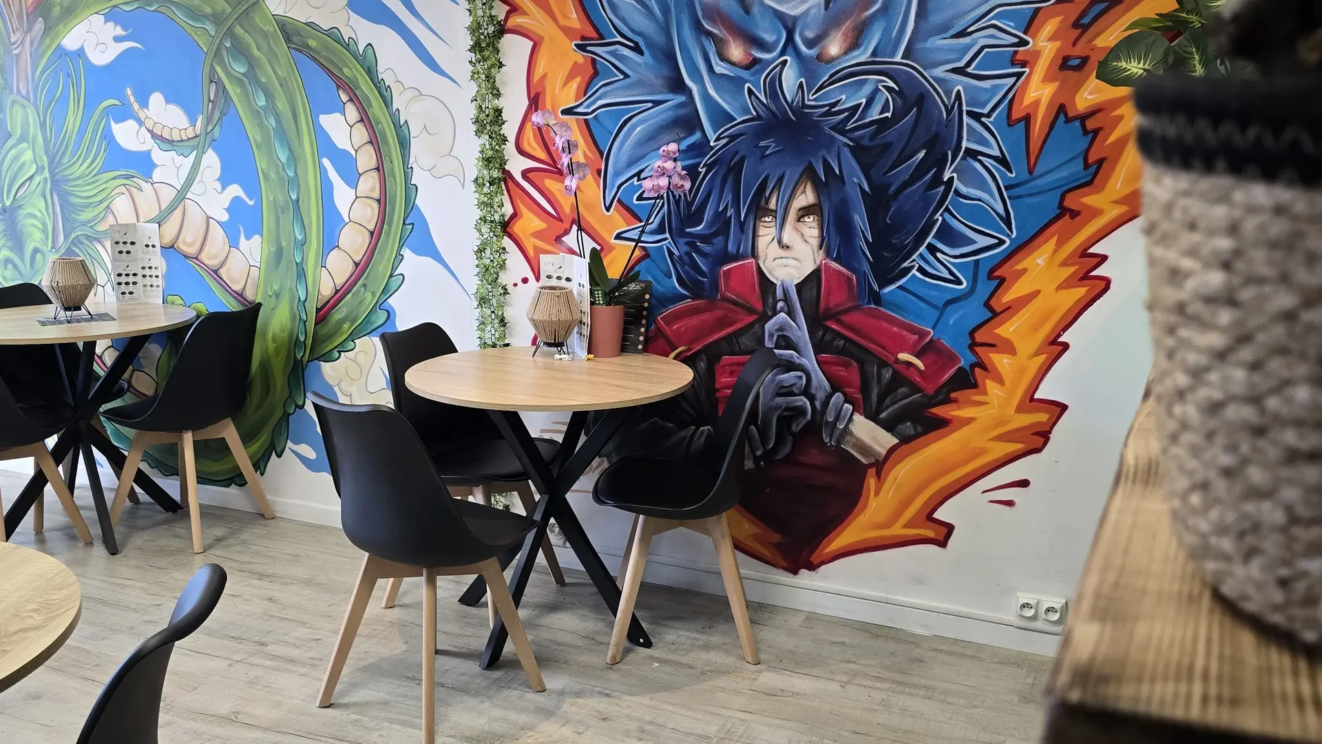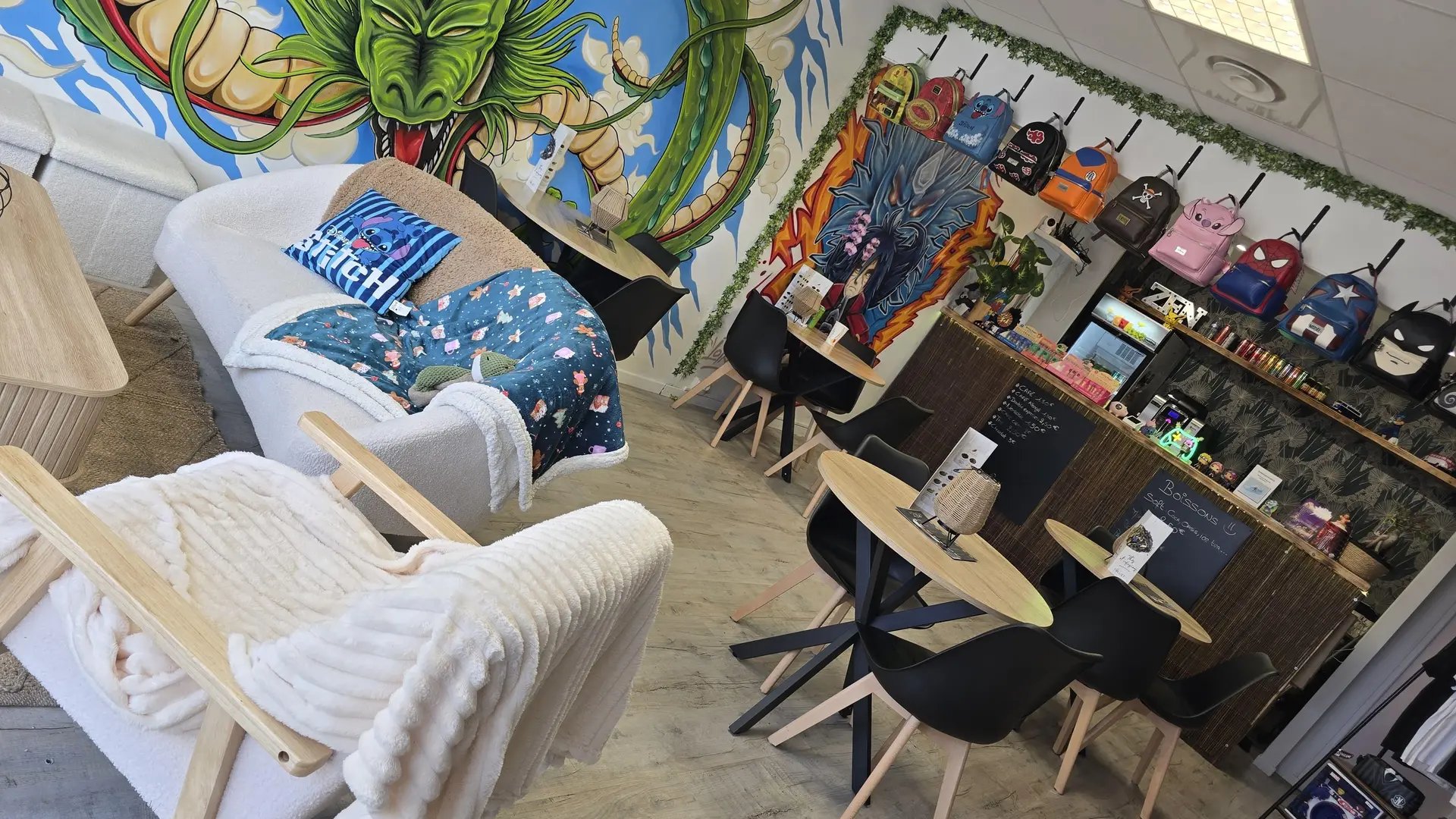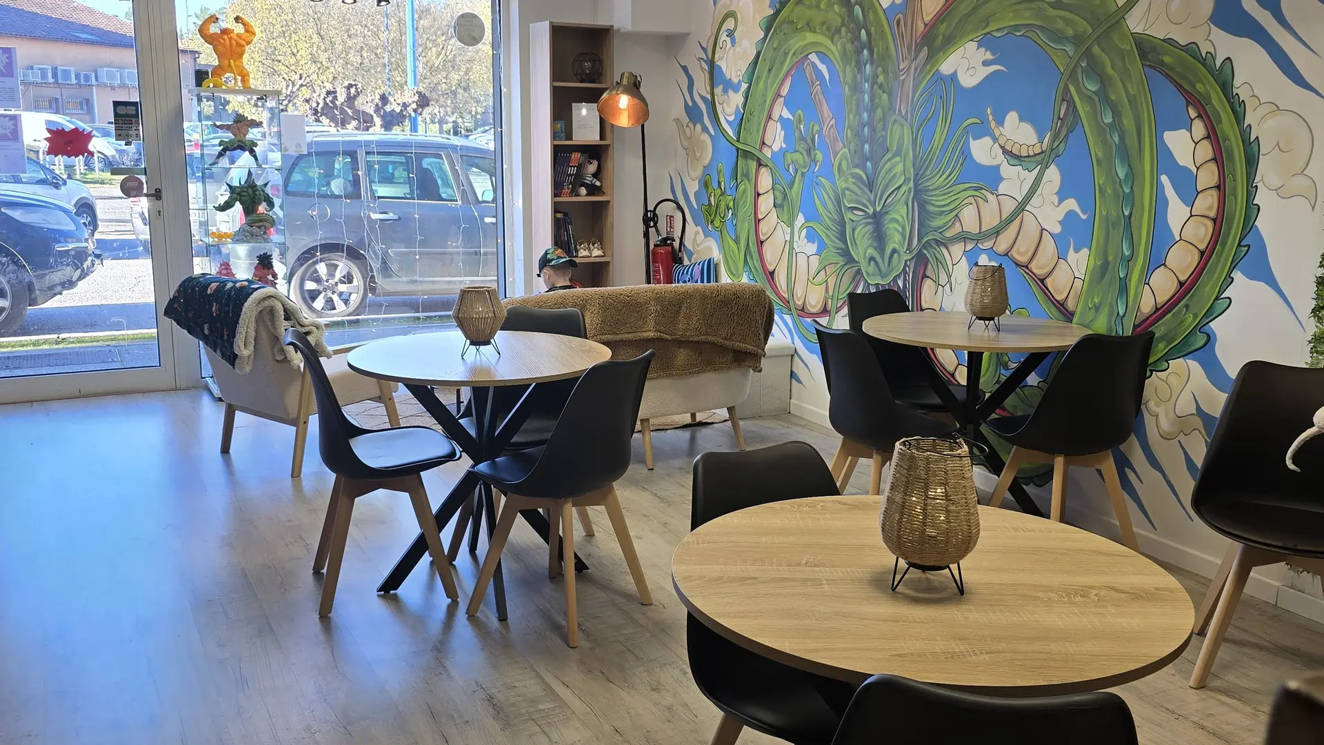 Ambiance Cocooning et esprit manga, venez vous détendre faire votre lecture autour d'un bon café, thé, chocolat, smoothie milkshake ou autre. Jeux de société a disposition, espace work et tatouage.