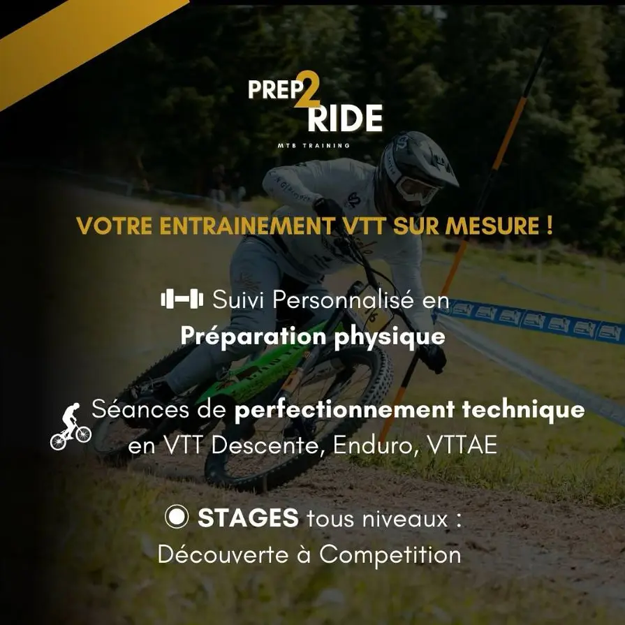 Bienvenue chez Prep2ride créé pour accompagner les VTTistes dans leurs entrainements physiques et techniques ! Des stages pour des clubs, comités ou entreprises, pour la découverte du VTT jusqu’à la Compétition. Contactez-moi pour plus d'infos !