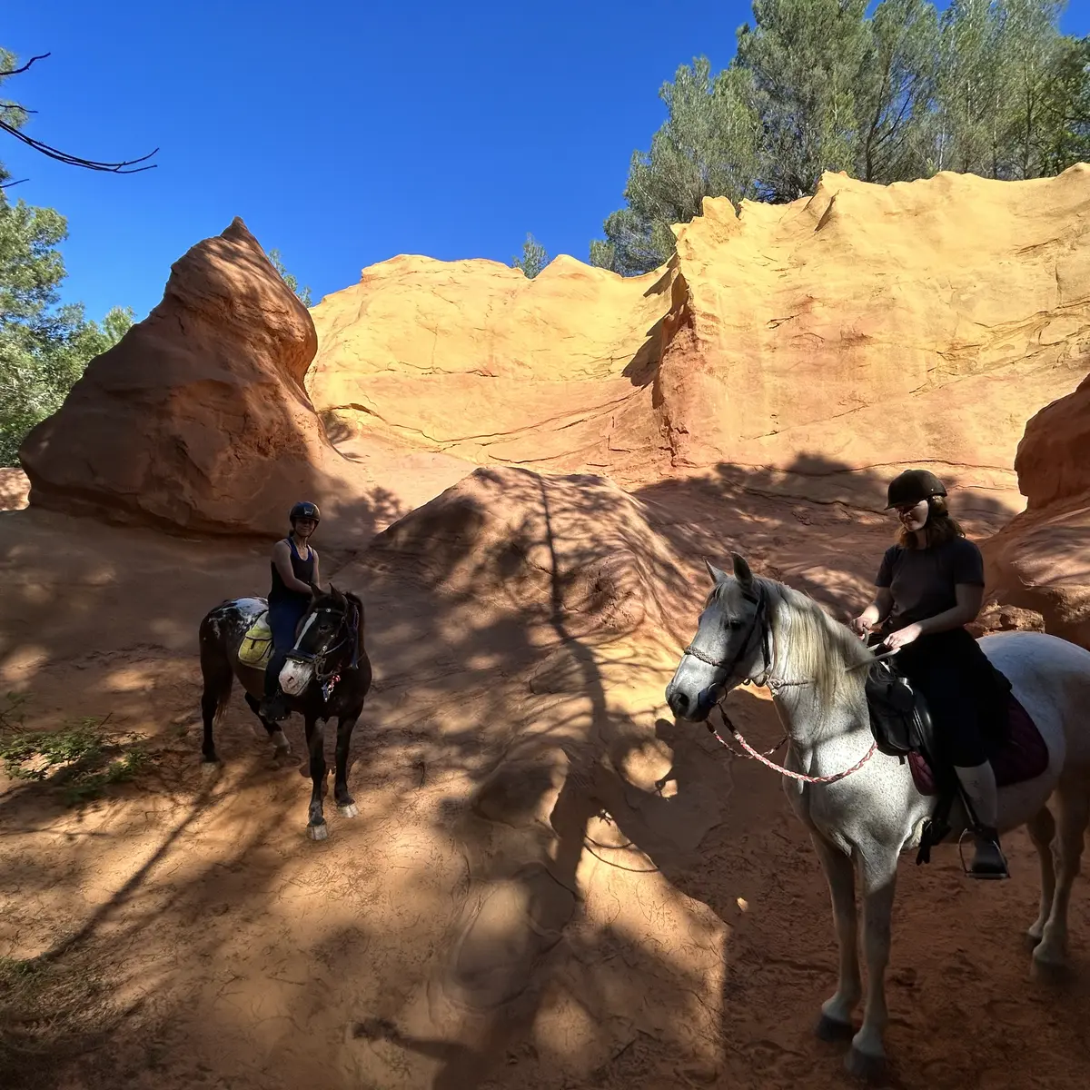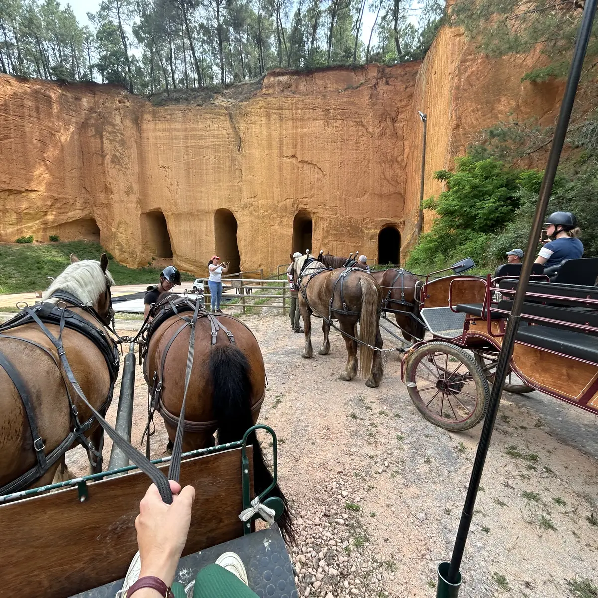 Nos chevaux vous emmène en famille ou entre amis dans les ocres provençales. Visite des Mines de Bruoux, de la carrière d’extraction d’ocre encore en activité et d’un pittoresque village provençal : Roussillon !