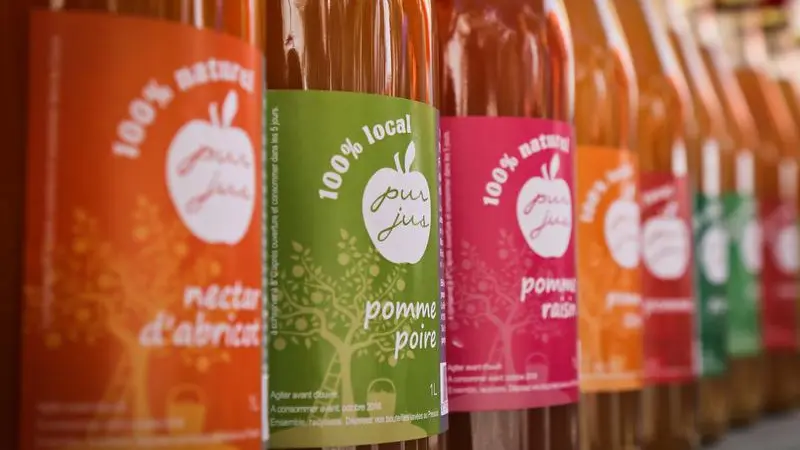 Nos jus de fruit -Pur Jus- sont produits à la Roche de Rame avec des fruits récoltés en très grande majorité dans les Hautes-Alpes et pour compléter dans les départements voisins. Nous offrons une gamme de plus de 10 jus de fruits 100% locaux et 100% naturels fabriqués artisanalement et à partir de fruits ramassés à pleine maturité. Nous n'ajoutons strictement rien, ni sucre ni conservateurs, dans les jus. Saveurs et bonheur garantis pour vos papilles !