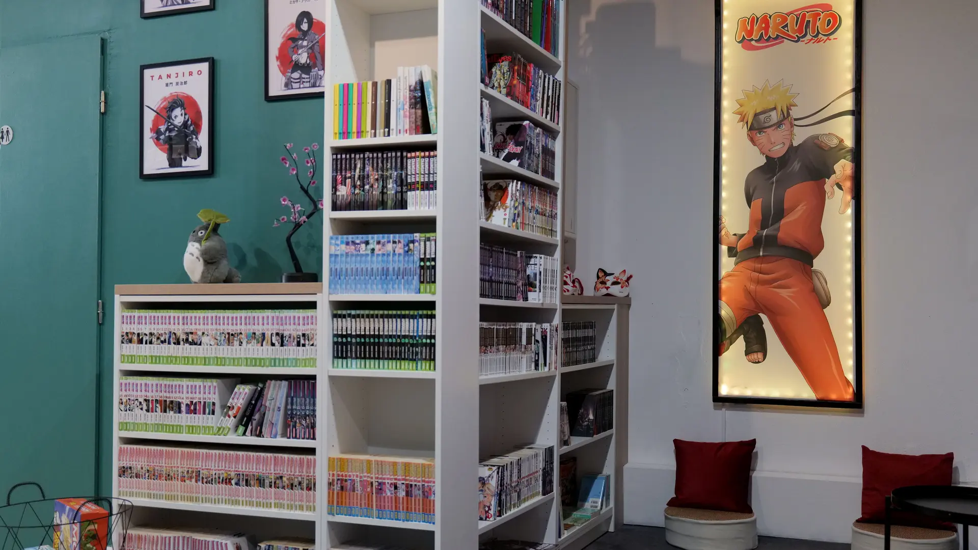 Vente de mangas, figurines, goodies, collector, snacks, boissons non alcoolisées, et articles 100% japonais. Espace de lecture payant à l'heure ou en abonnement avec livres, eux de sociétés et magazines.