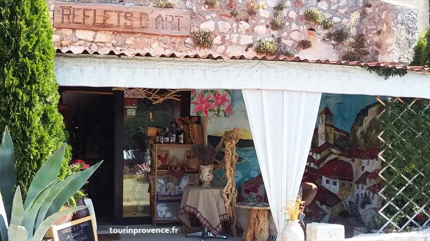 Reflet d’art à Bauduen vous invite à découvrir un artisanat provençal authentique et raffiné : tissus délicatement travaillés, objets en bois tournés à la main, faïence originale en terres mêlées, miroirs uniques, senteurs envoûtantes… Une belle vitrine de savoir-faire locaux à ne pas manquer.